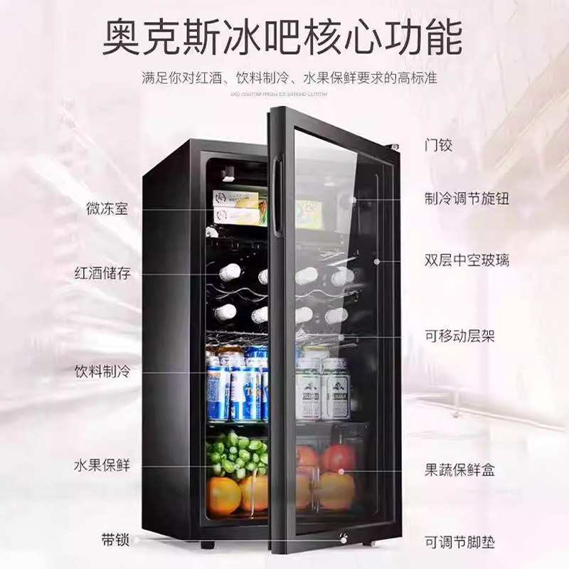 奥克斯冰吧小型单门小冰箱家用办公室透明饮料红酒茶叶冷藏保鲜柜