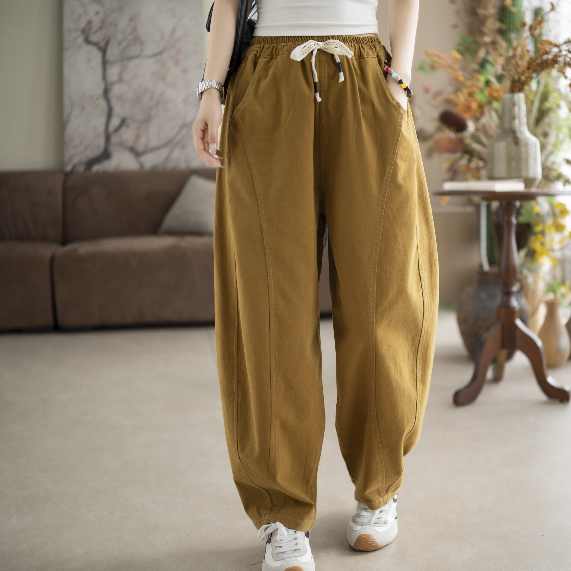 咖咪羽休闲裤女春季新款直筒百搭通勤洋气女士小脚裤全棉女装裤子