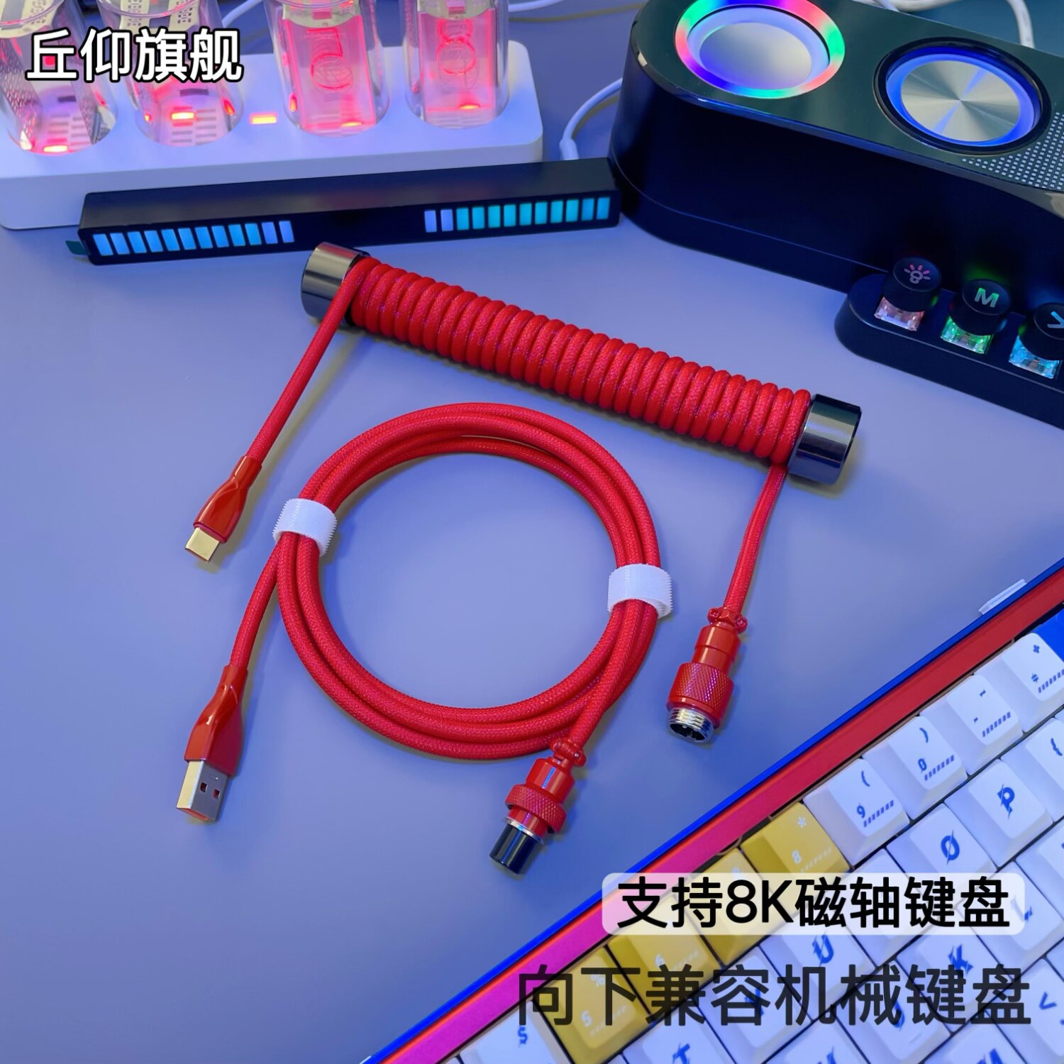 五芯8K磁轴客制化键盘数据线航插线伸拉螺旋线弹簧快充线typecUSB