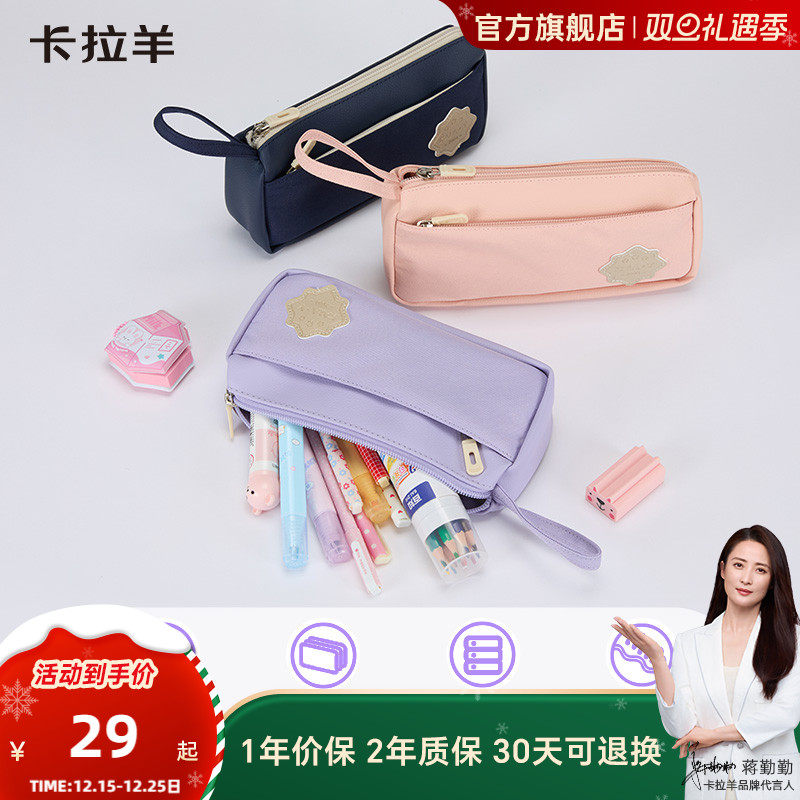 卡拉羊小学生笔袋大容量轻便文具盒安全抑菌防泼水易打理初高中生女考研收纳铅笔袋男可爱简约ins风糖果色