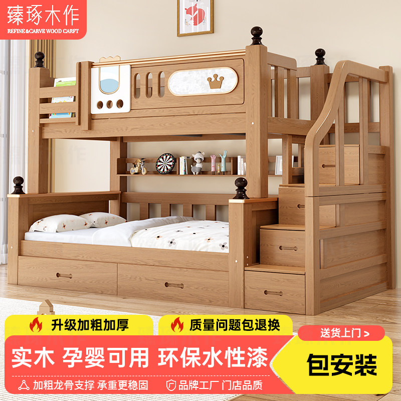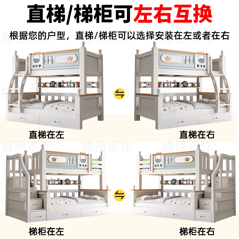 实木床橡木多功能上下床双层床儿童床子母床高低床双人床上下铺床