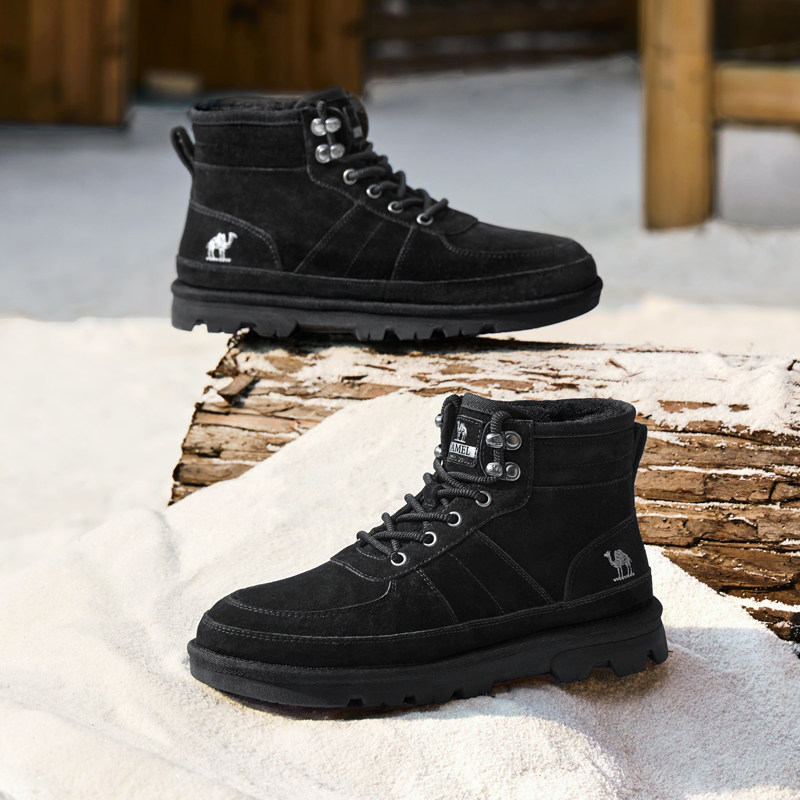【骆驼踏雪】男鞋2025冬季加绒加厚棉鞋防滑运动高帮雪地靴