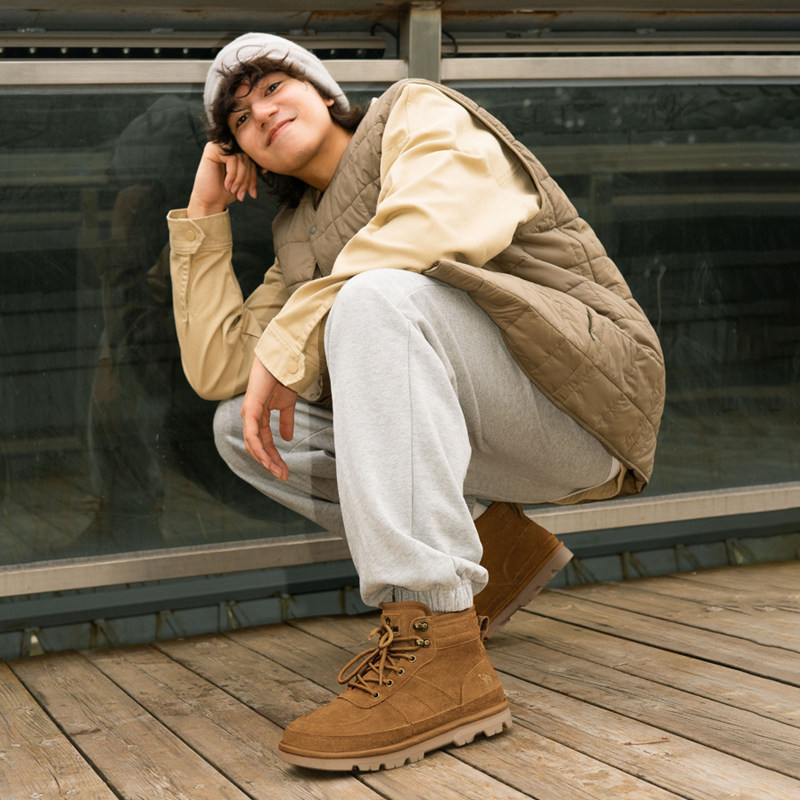 斯凯奇冬季新款男子舒适加绒加厚保暖棉鞋短筒鞋靴平跟百搭雪地靴