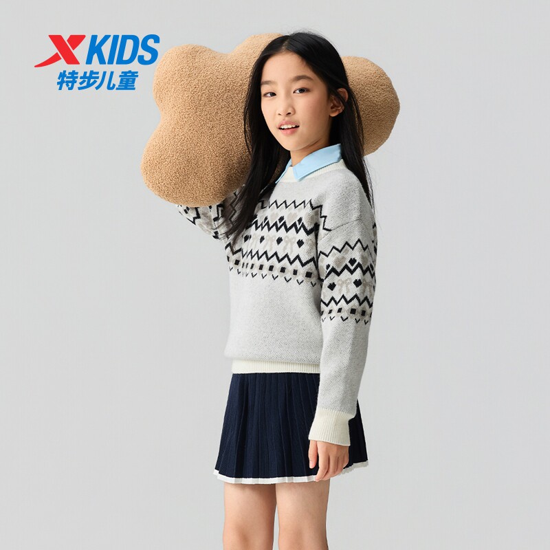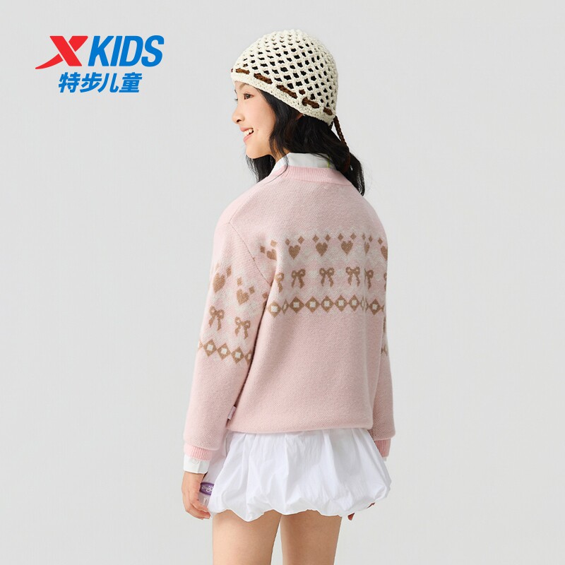 特步童装秋冬新款女童保暖休闲软糯毛衫儿童运动亲肤圆领学生毛衣