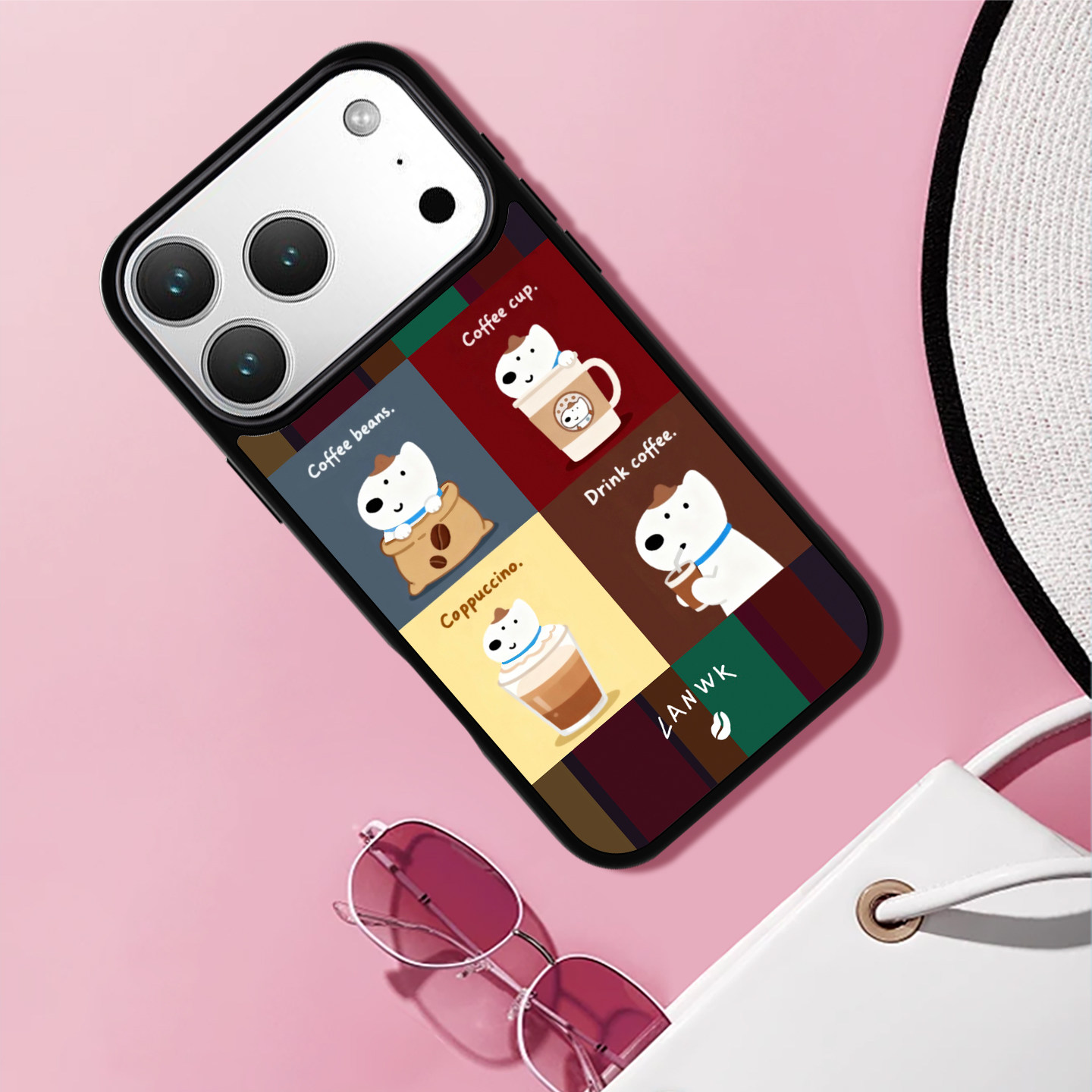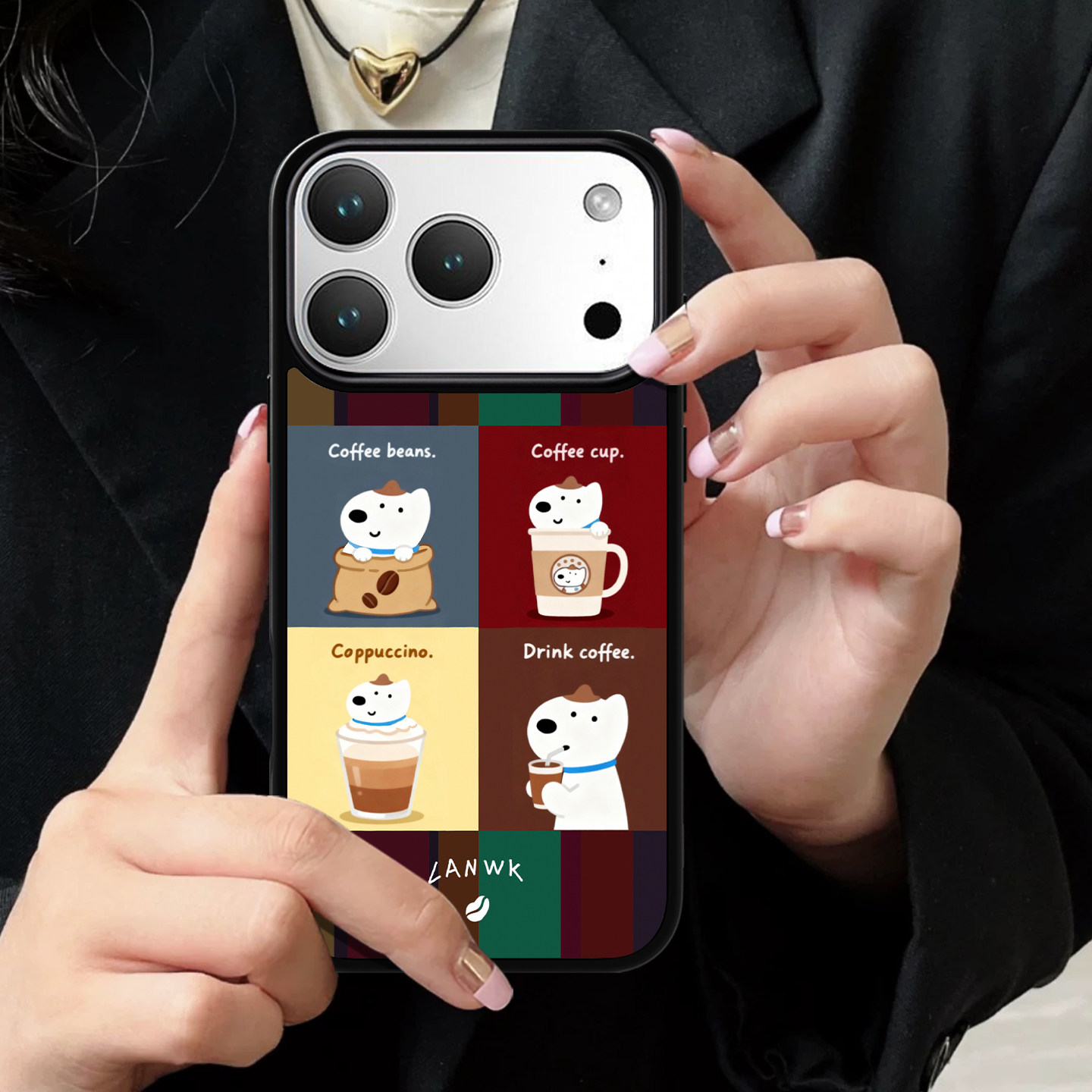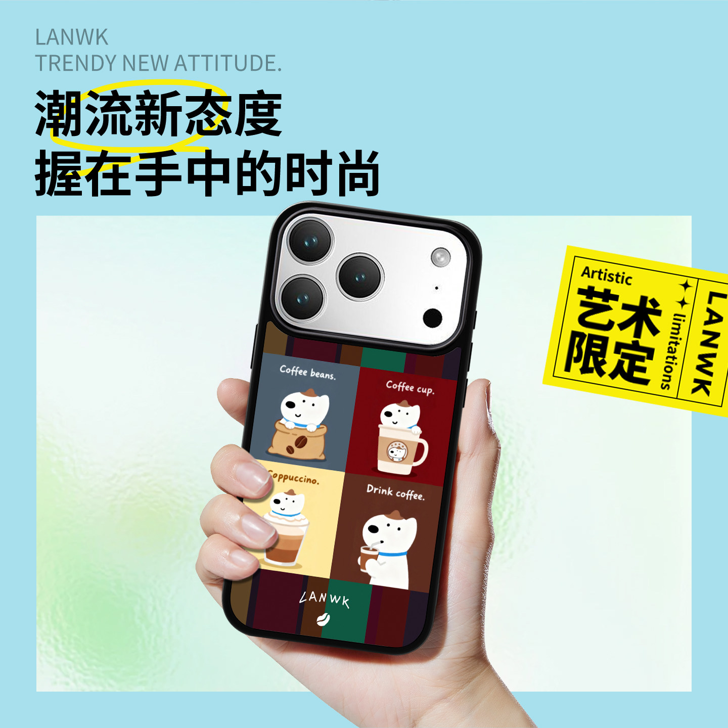 「小狗咖啡」LANWK适用iPhone16/15/14/13/12Pro/Max/plus防摔磁吸新手机壳女苹果17Air玻璃好看高级手机外壳