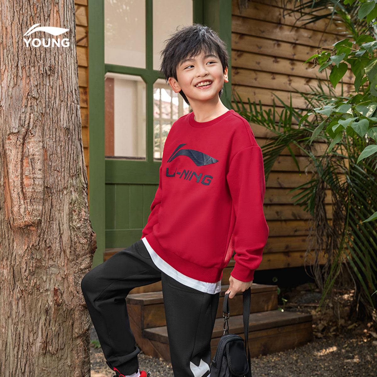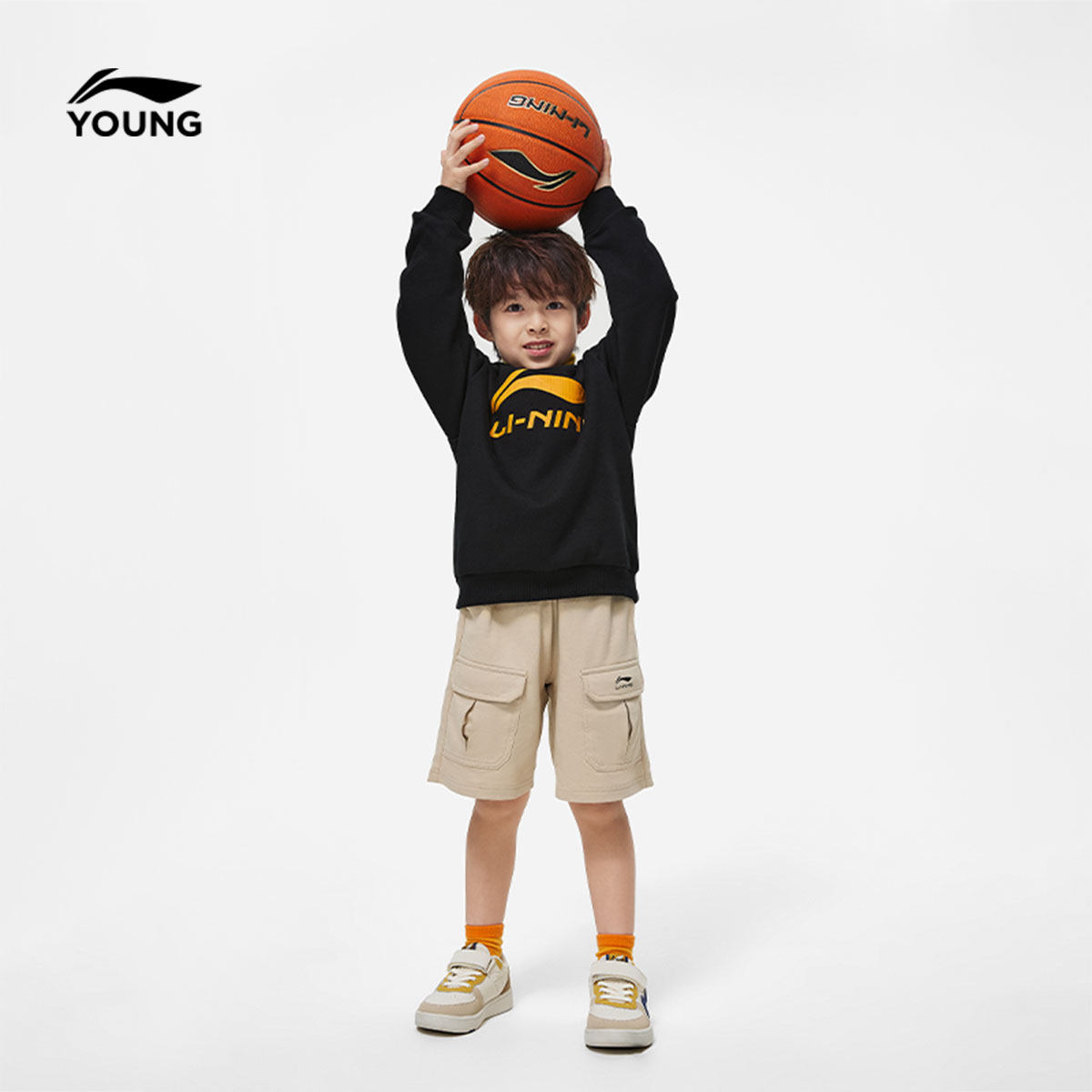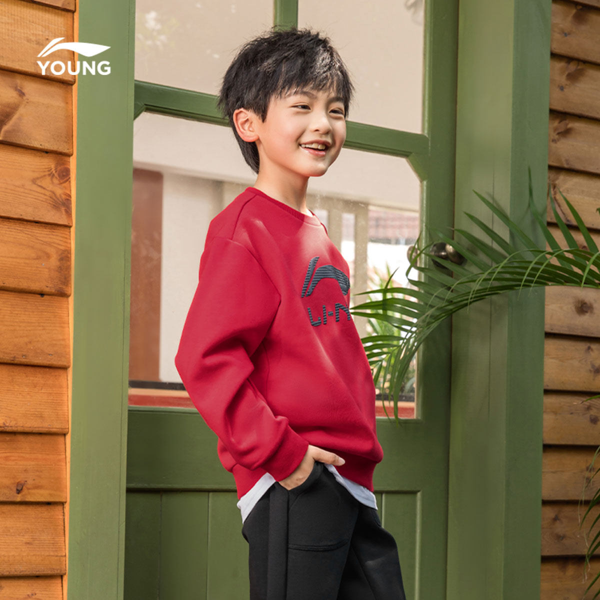 李宁童装卫衣男女大童运动生活系列圆领青少年春季休闲针织童装