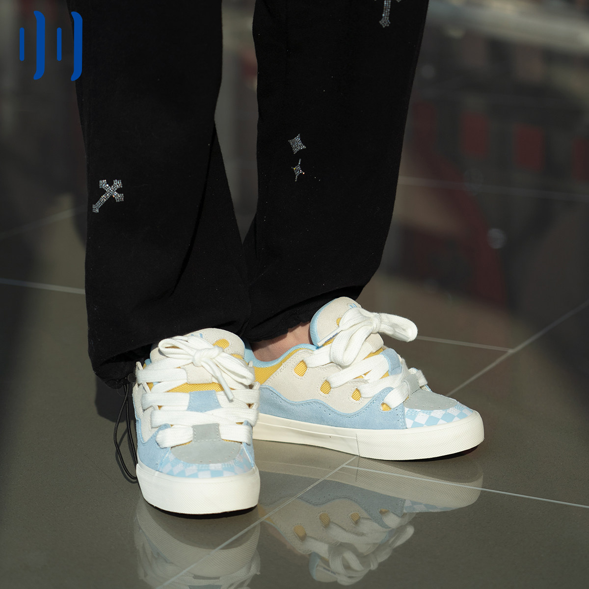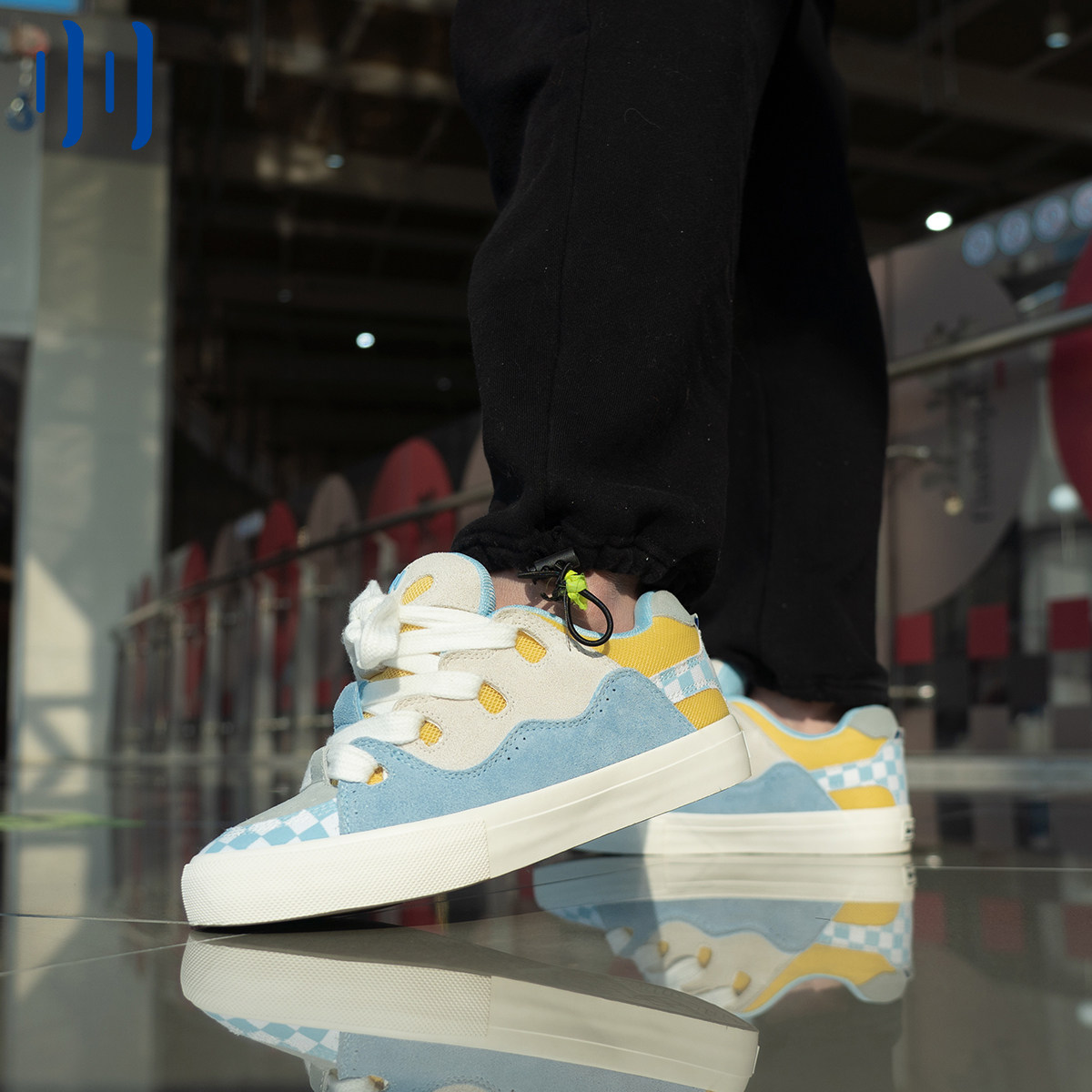 顽刻官方面包鞋蓝白黄撞色拼接秋冬复古BAKE低帮男女国潮滑板鞋