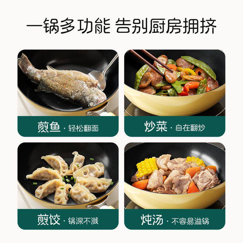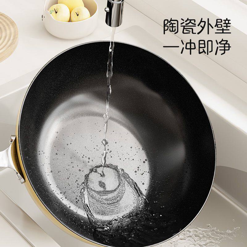 陶瓷炒锅无氟涂层高颜值不粘锅家用聚油不沾锅燃气电磁炉用炒菜锅