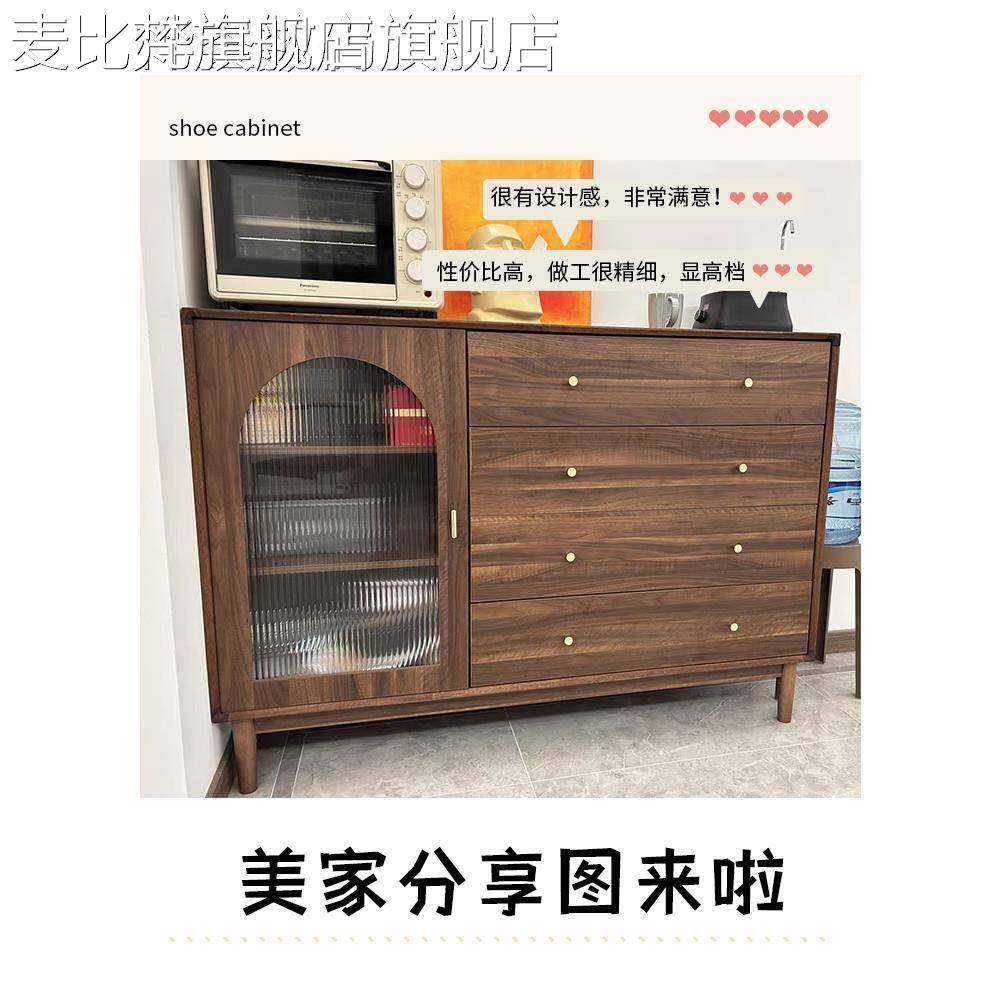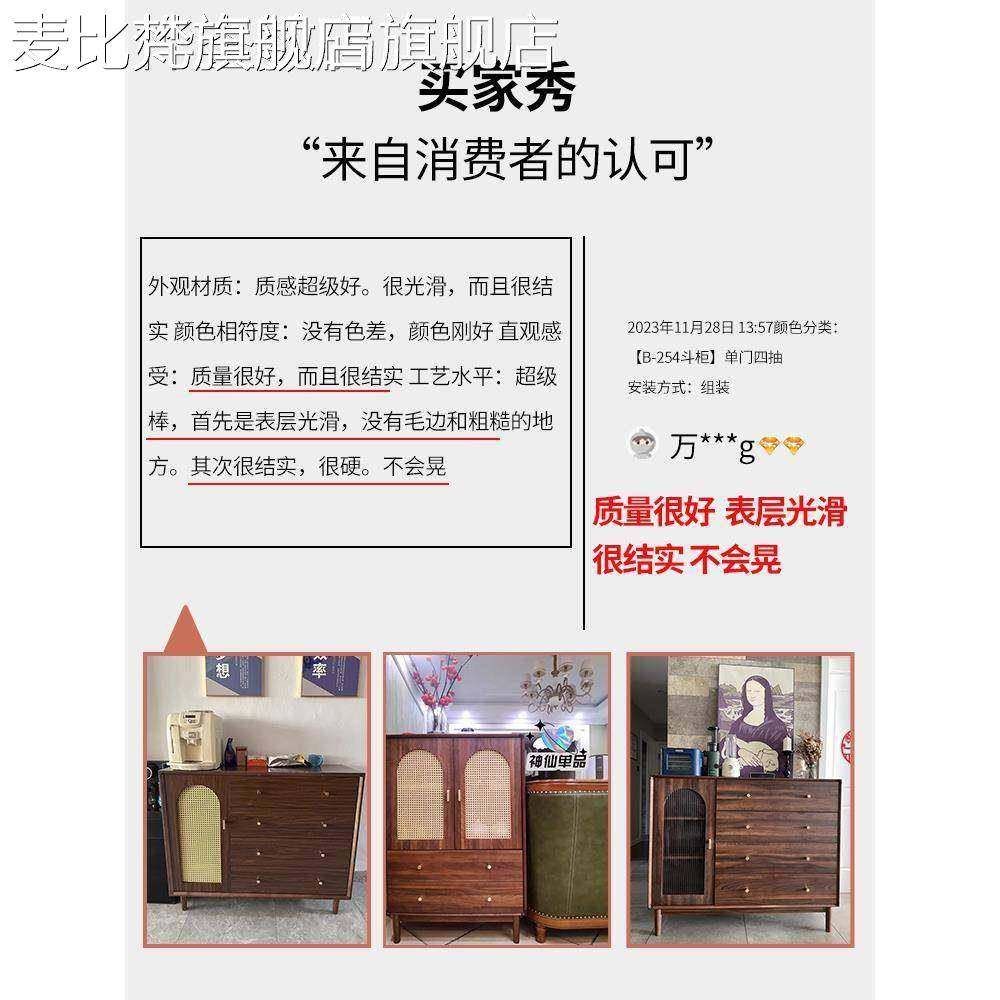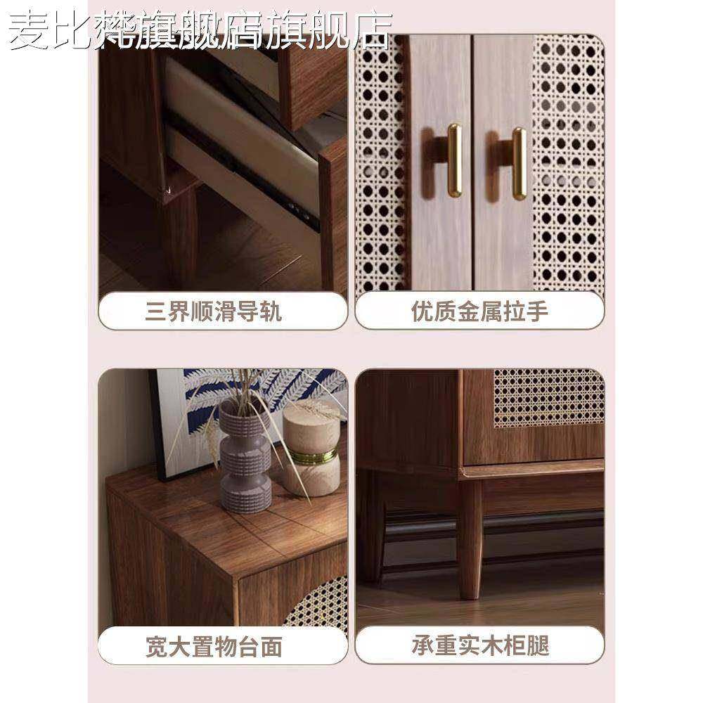 麦比梵藤编实木腿餐边柜斗柜客厅收纳柜中古风覆古置物柜靠墙一体储物柜床笠拉车