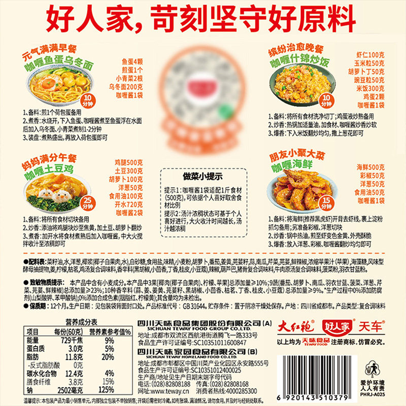 好人家元气果蔬咖喱料理包120g家用调味酱料理酱专用调料配方海鲜