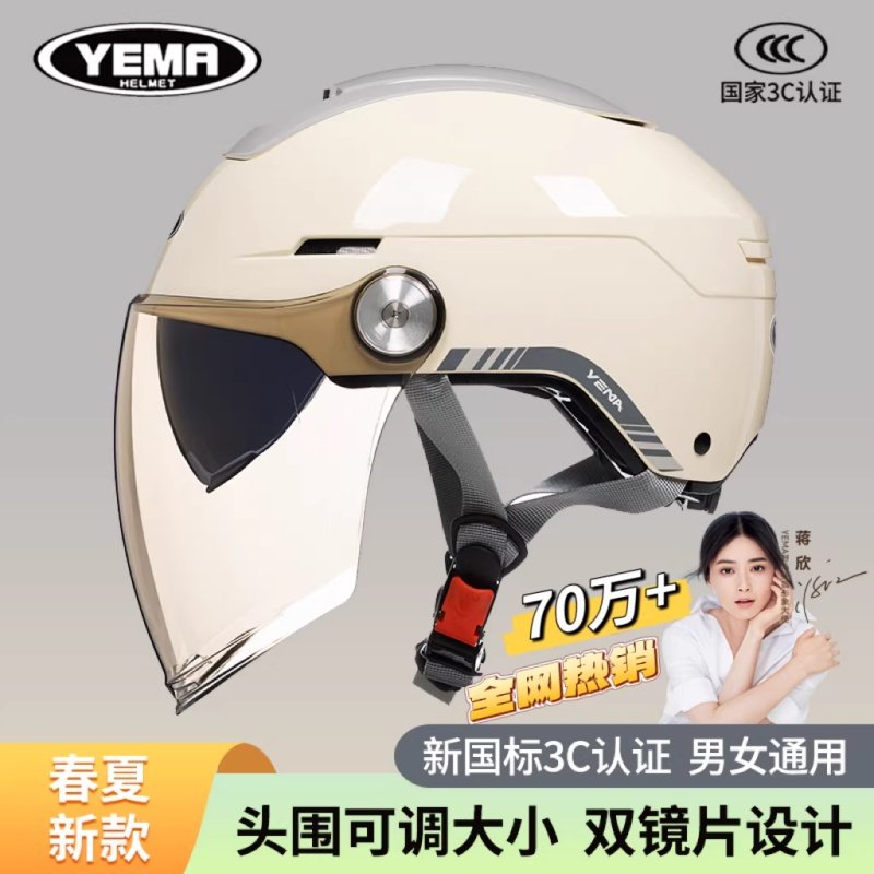 新国标3c认证电动车头盔电瓶摩托车安全帽夏季半盔四季通用镜片