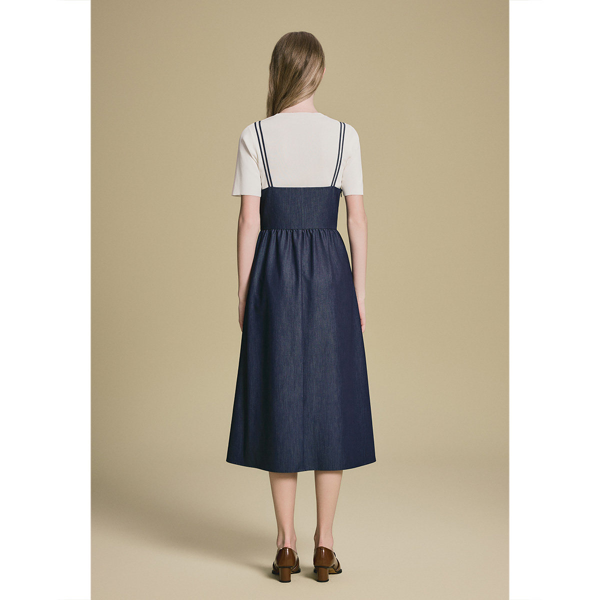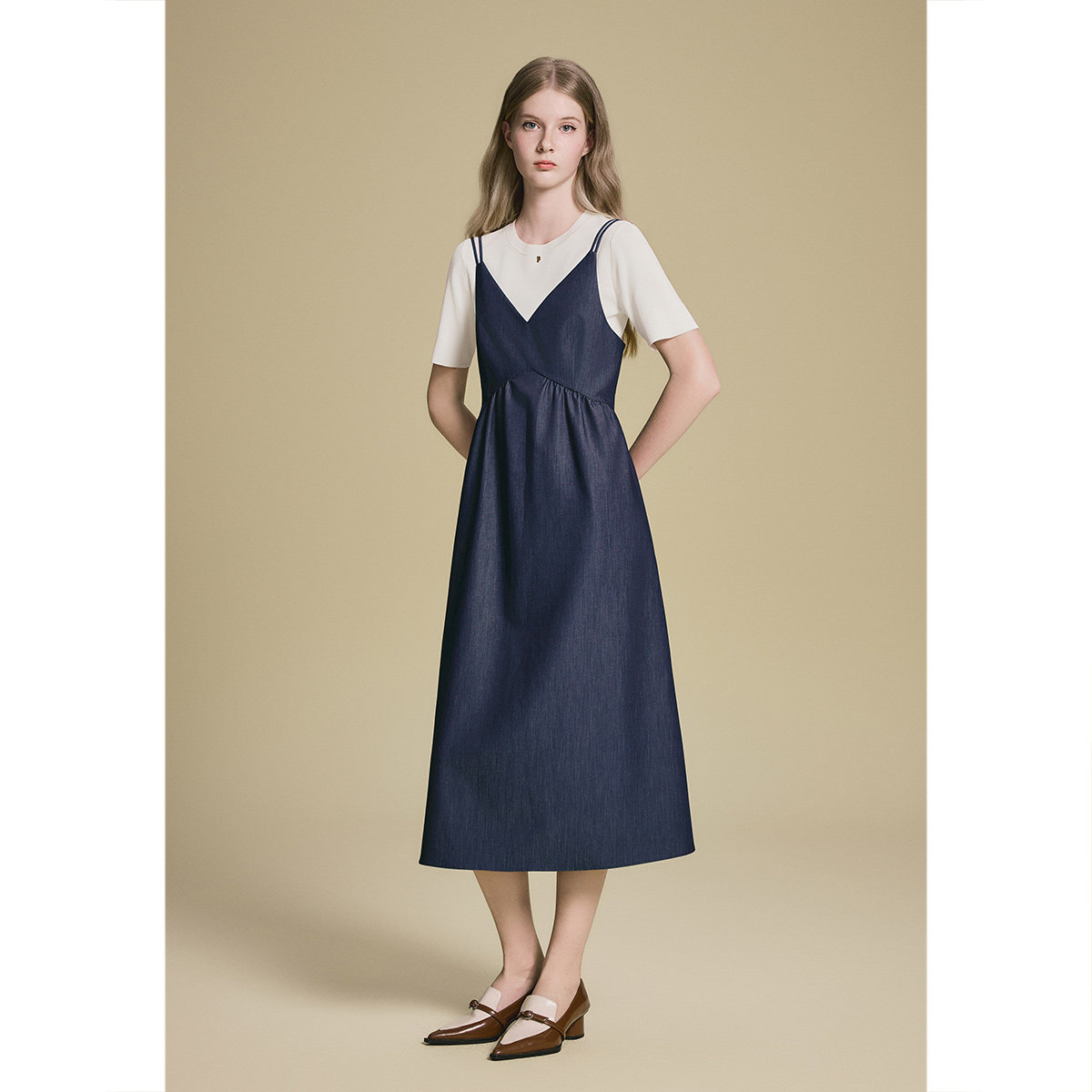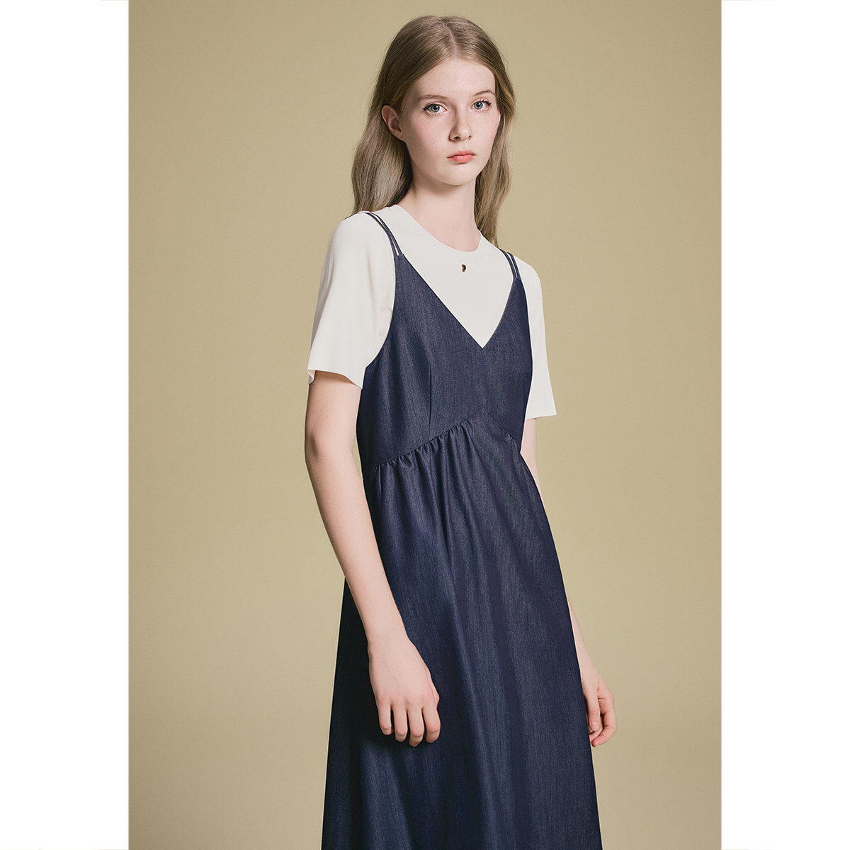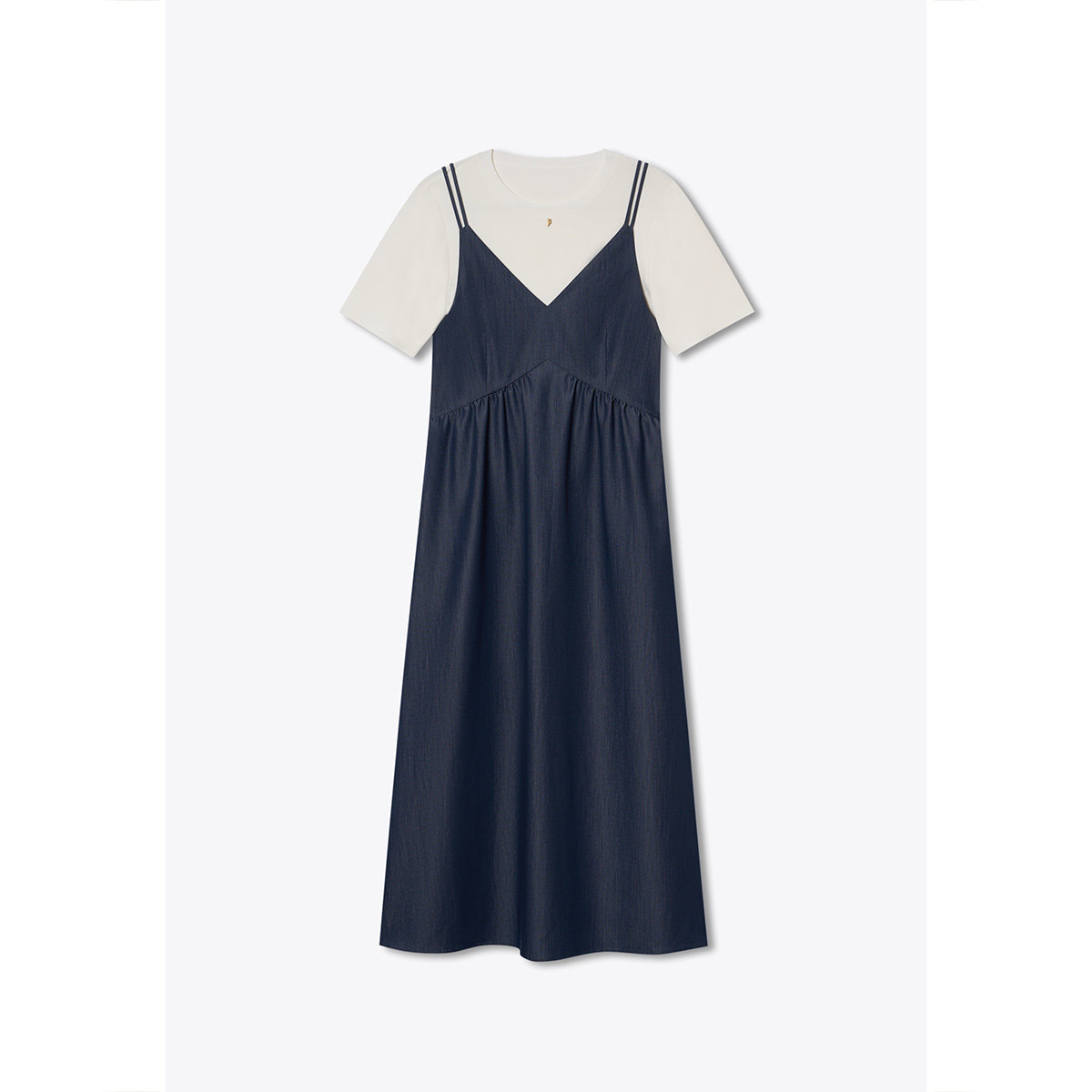 诗篇专选曲珠冰麻纱T恤双肩带V领吊带连衣裙两件套2025夏季