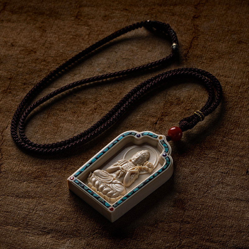 孤品【猛犸象牙·菩萨】汽车挂件朱砂圆珠车载内饰男女礼一物一证