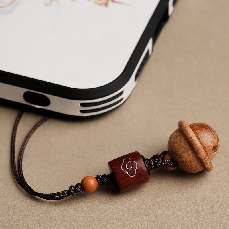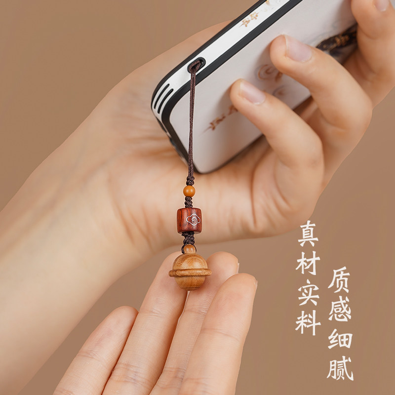 桃木小铃铛手机挂件国风设计血檀祥云钥匙扣精致可爱汽车挂件新款