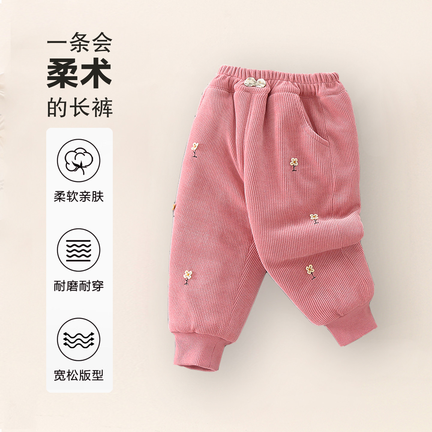 婧麒宝宝裤子夹棉加厚女童棉裤秋冬装秋冬款童装2025新款一条过冬