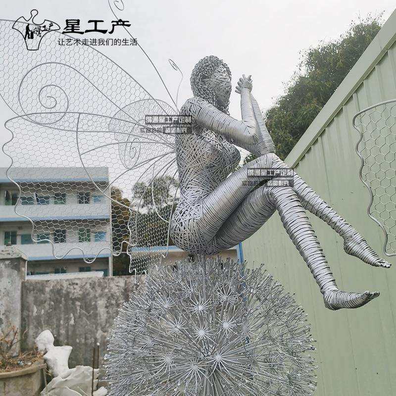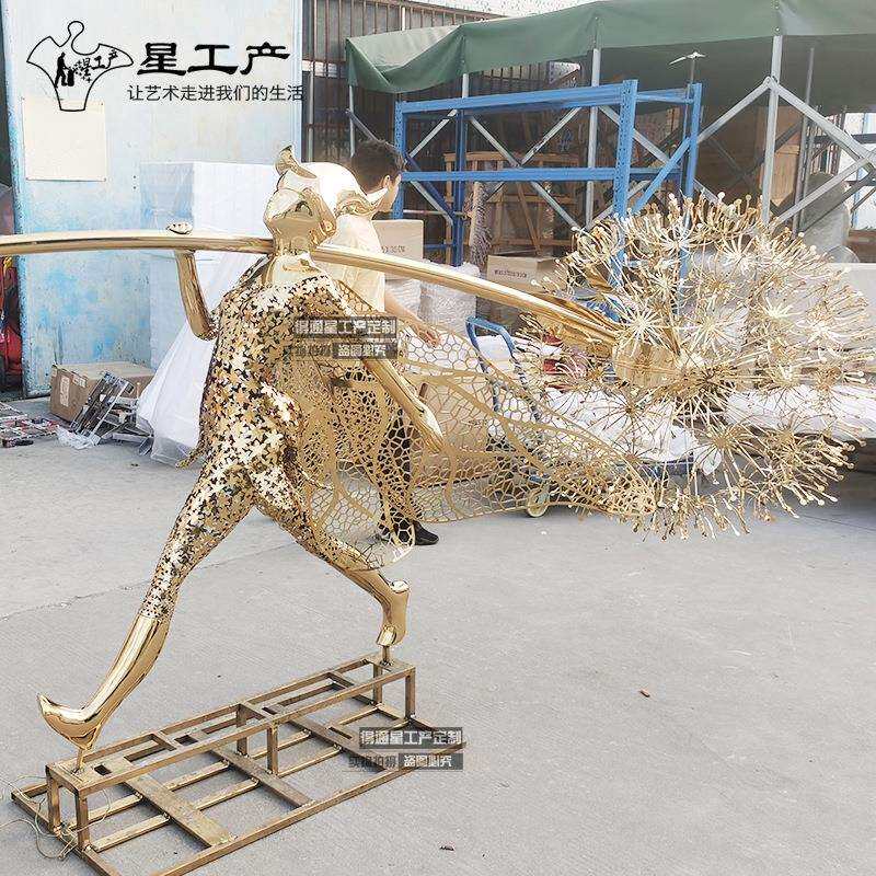 酒店楼盘小区园林景观不锈钢精灵金属雕塑后庭院软装仙子人物摆件