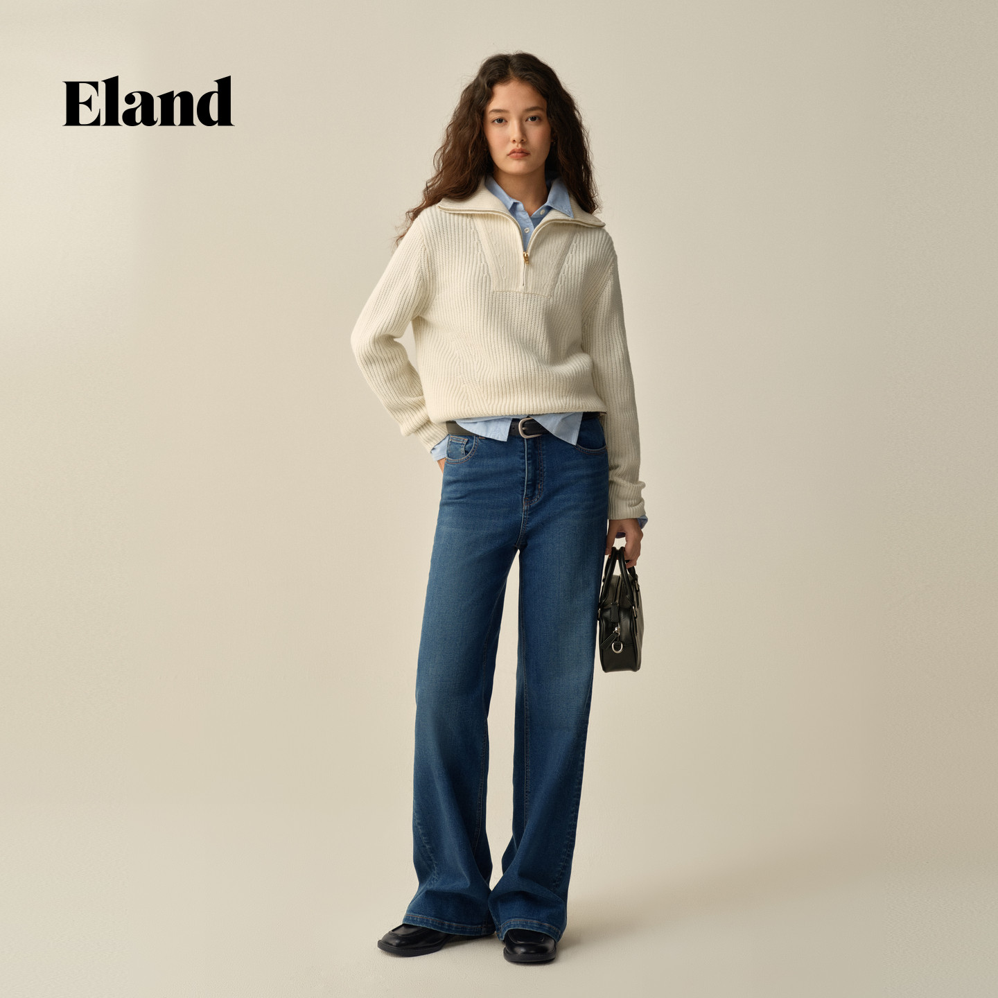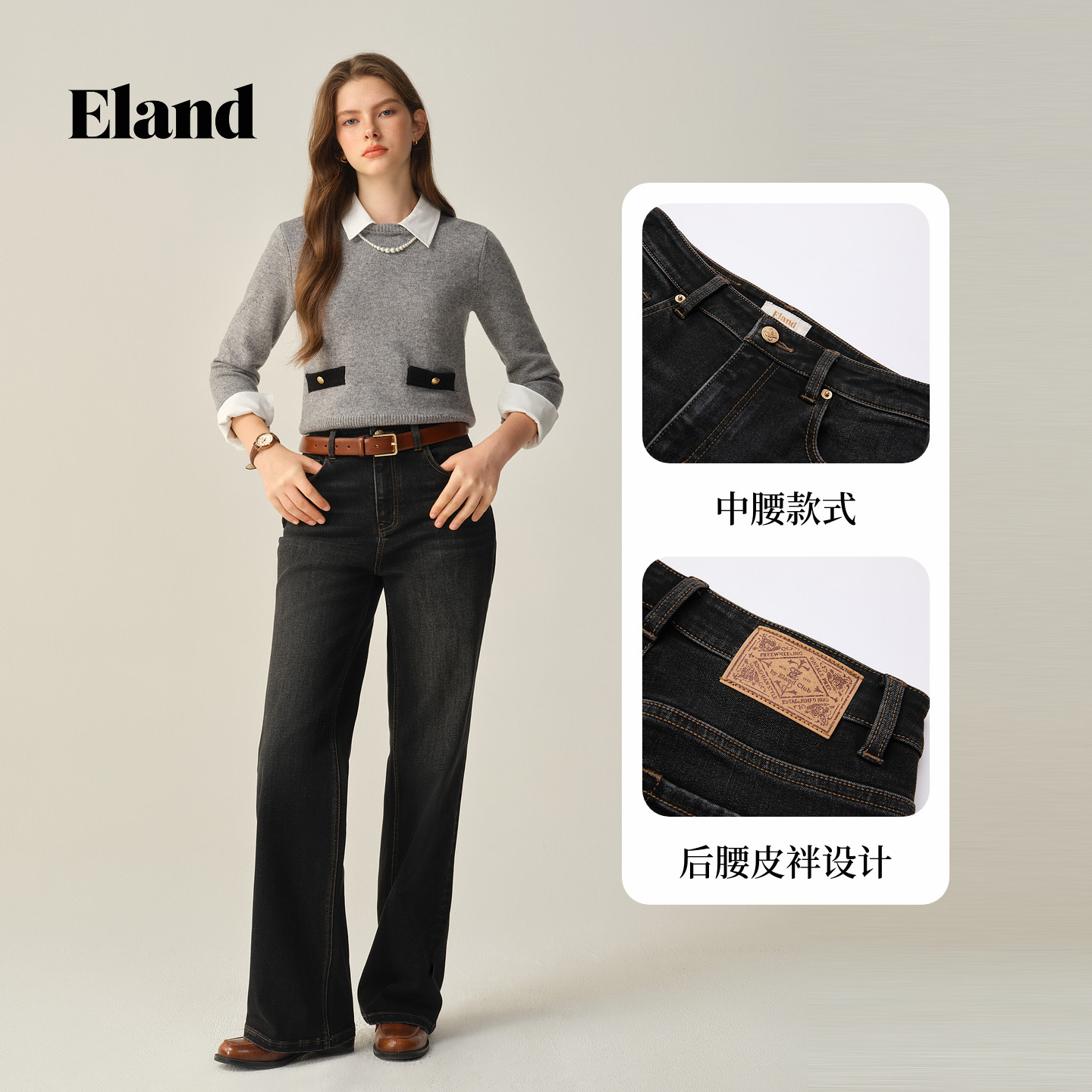 【莱卡】Eland衣恋牛仔裤女小宽松阔腿裤通勤长裤子2025冬季新款