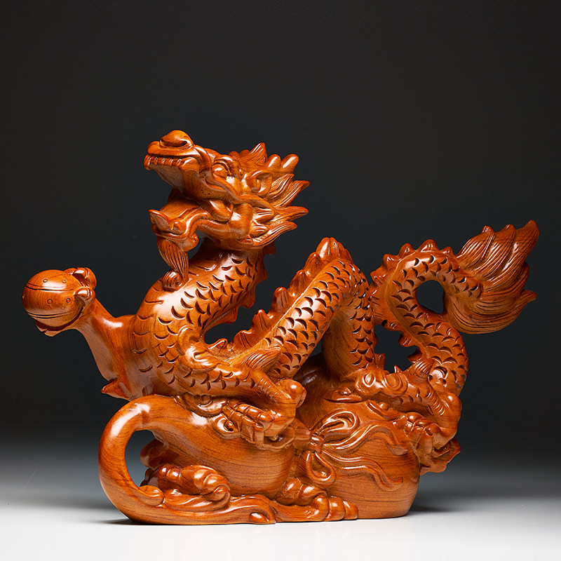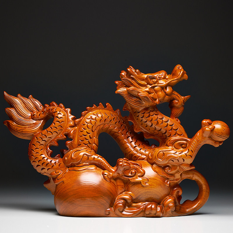花梨木雕刻龙摆件实木五爪金龙工艺品生肖龙客厅办公室家居装饰品