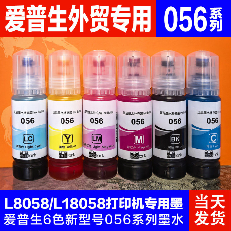 适用爱普生056原墨水补充装L8058 L18058打印机六色连供墨仓式