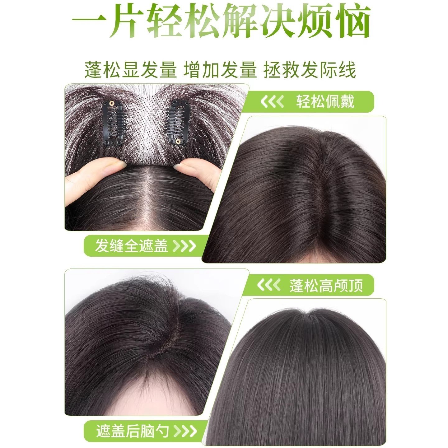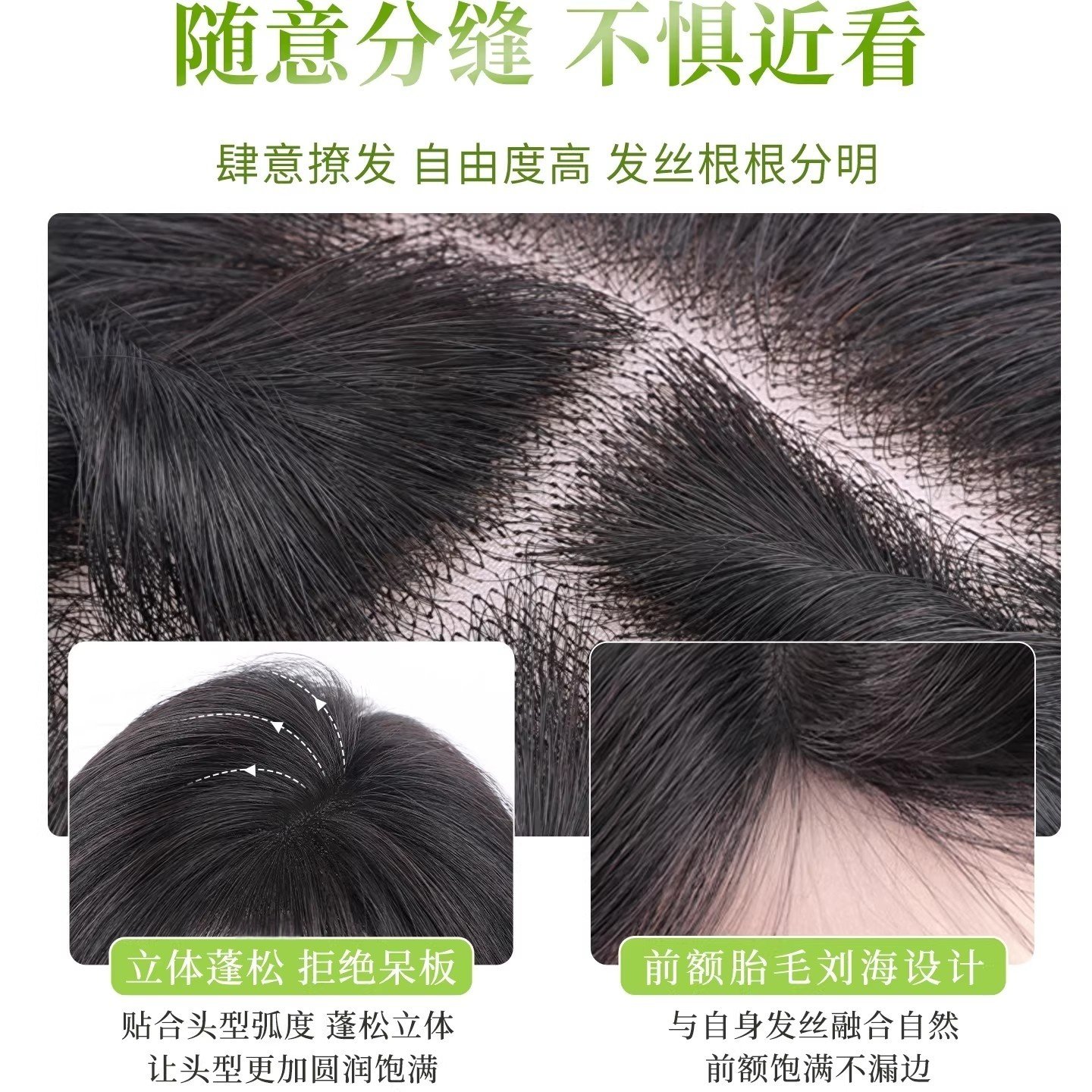 八字刘海假发女片头顶补发蓬松增发量仿真发遮白发轻薄无痕高颅顶
