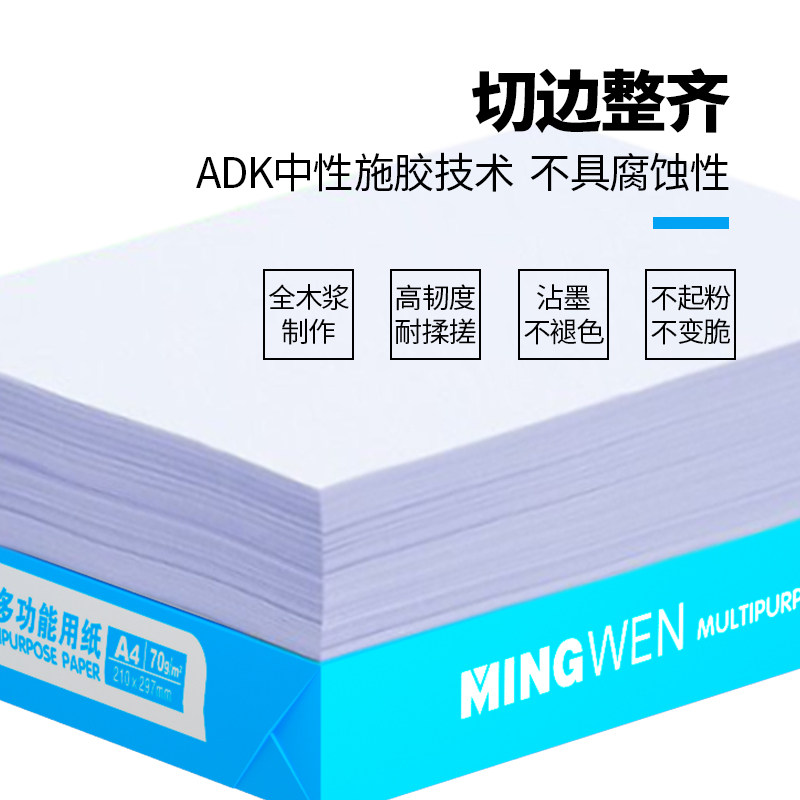明闻a4纸 打印纸 70g复印纸整箱2500张 打印机纸 白纸80g500张*5包一箱 双面使用草稿纸