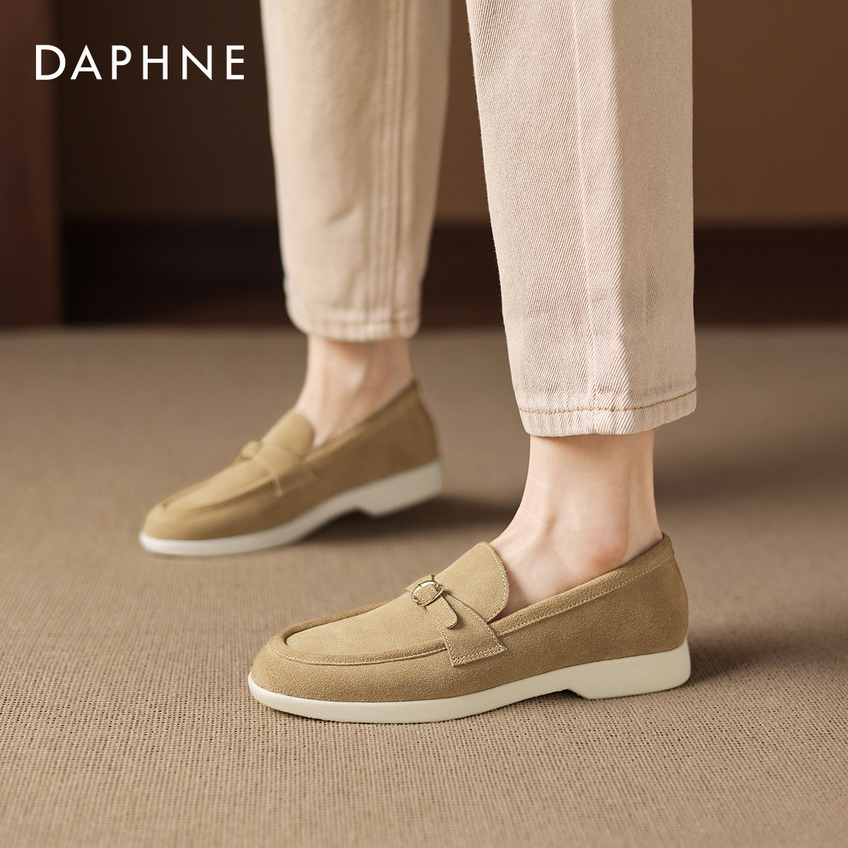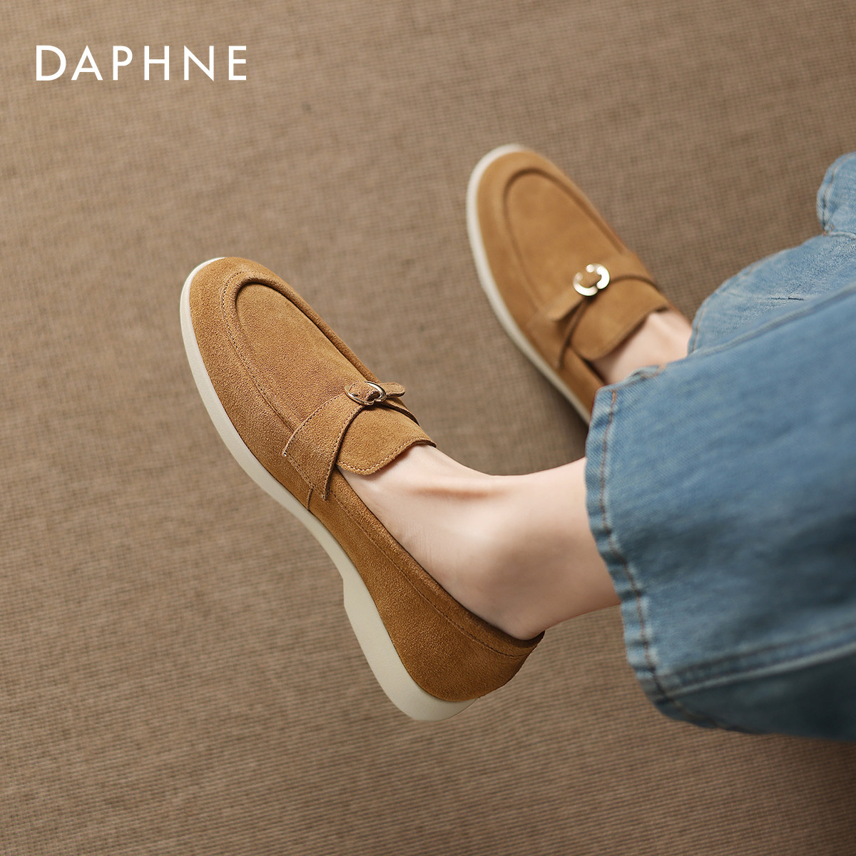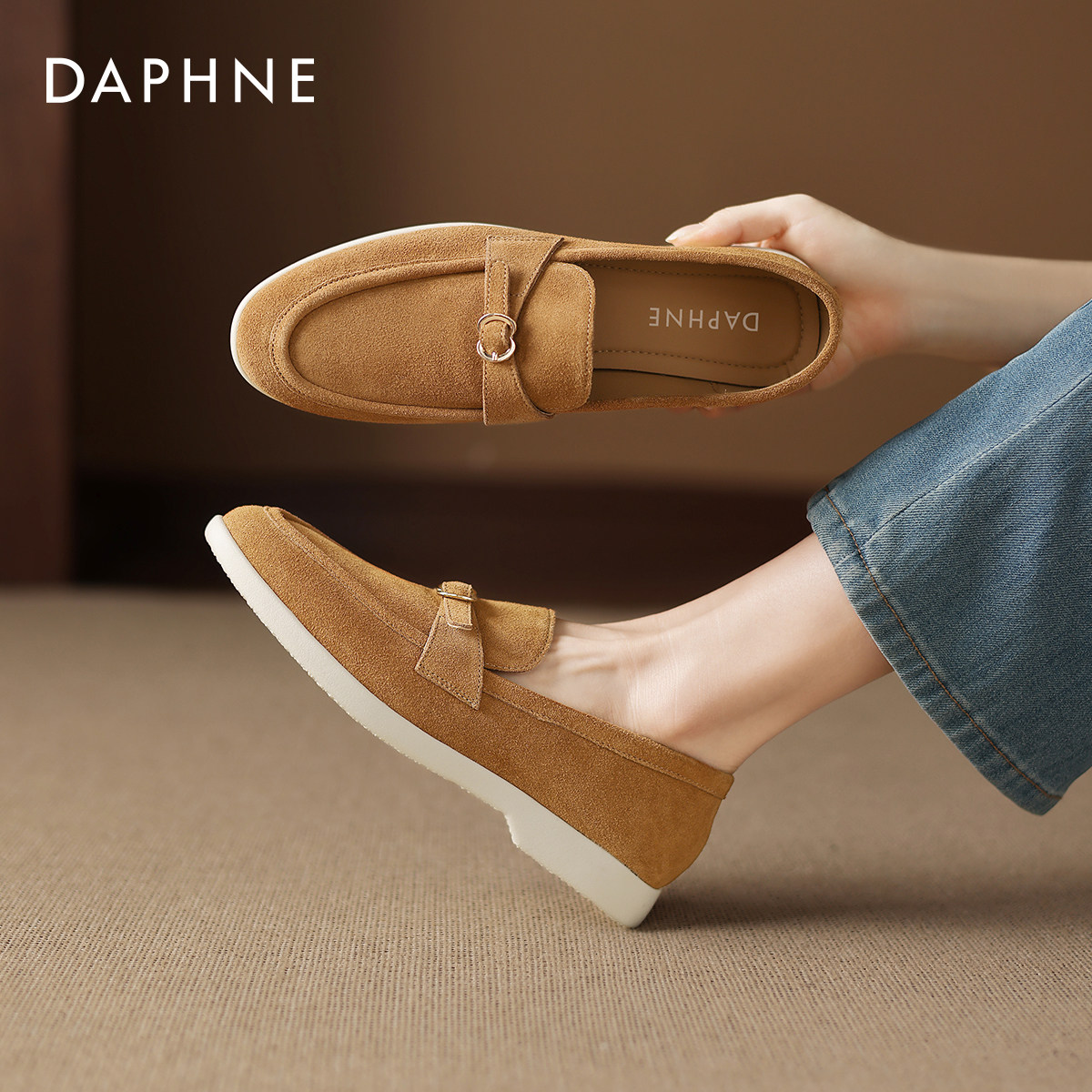 达芙妮老钱风乐福鞋女2026新款春季真皮棕色平底单鞋软底豆豆皮鞋