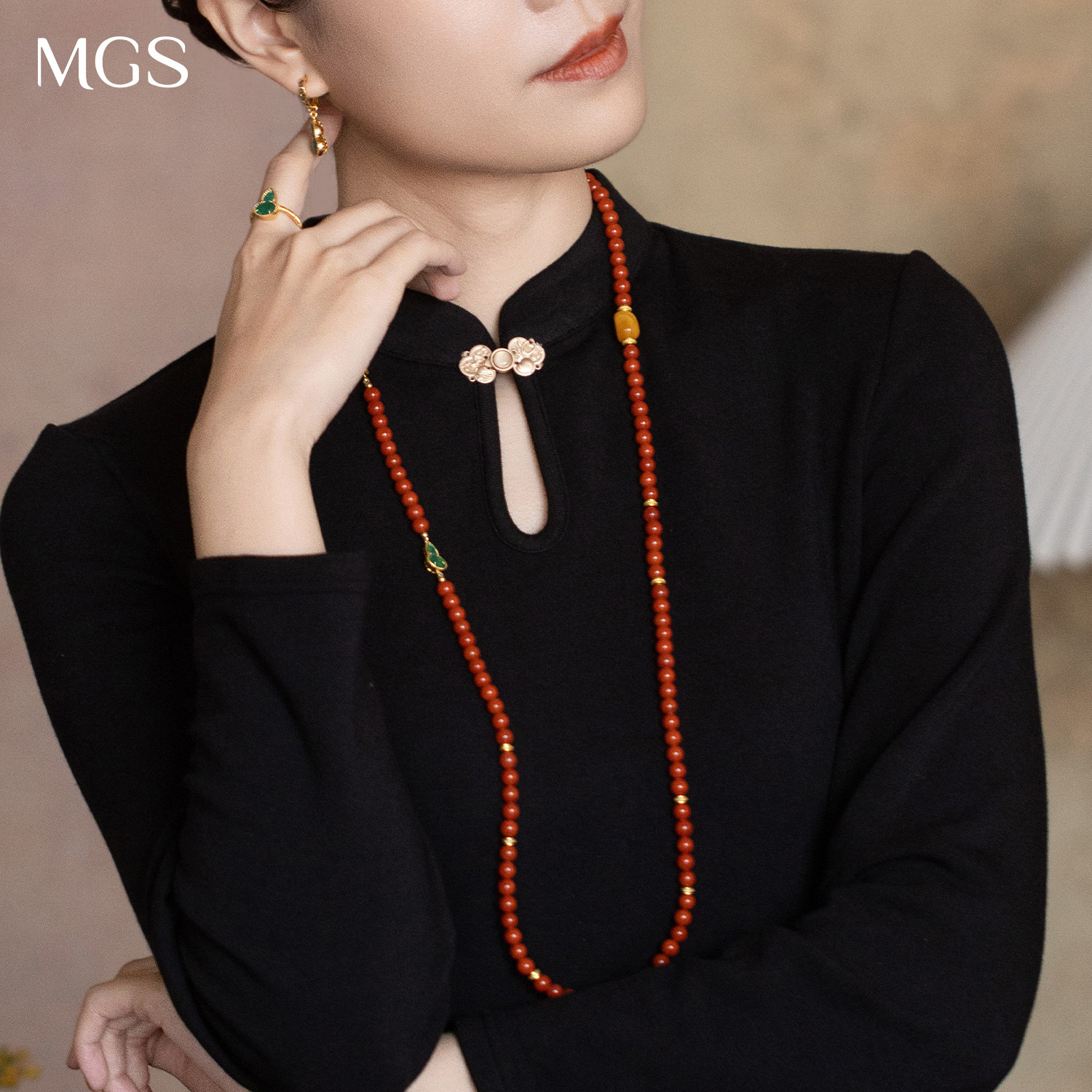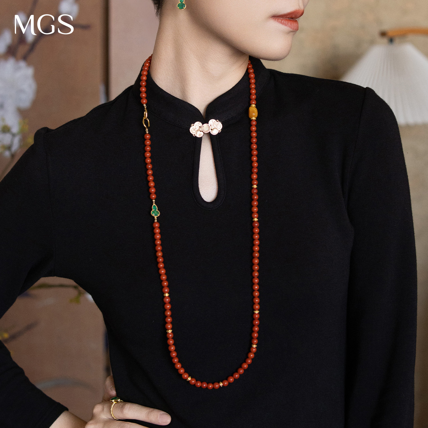 MGS/曼古银宝葫芦系列南红玛瑙项链古典风原创设计蜜蜡女士毛衣链