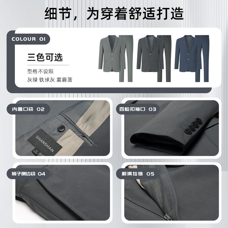 SHANSHAN杉杉官方男士商务正装套西2025秋季新款高级感西服套装男