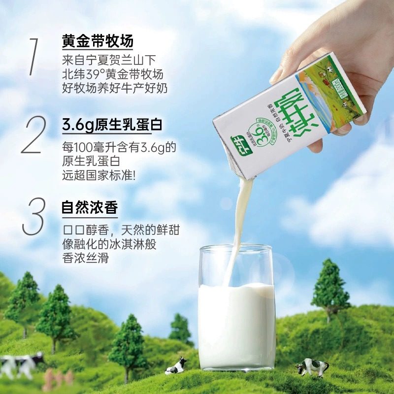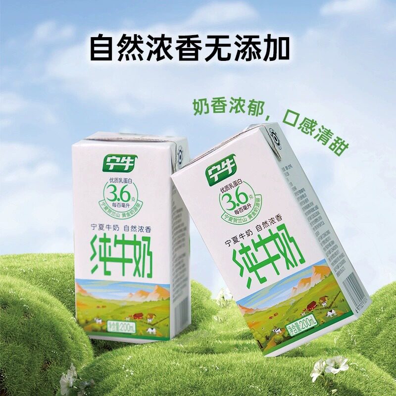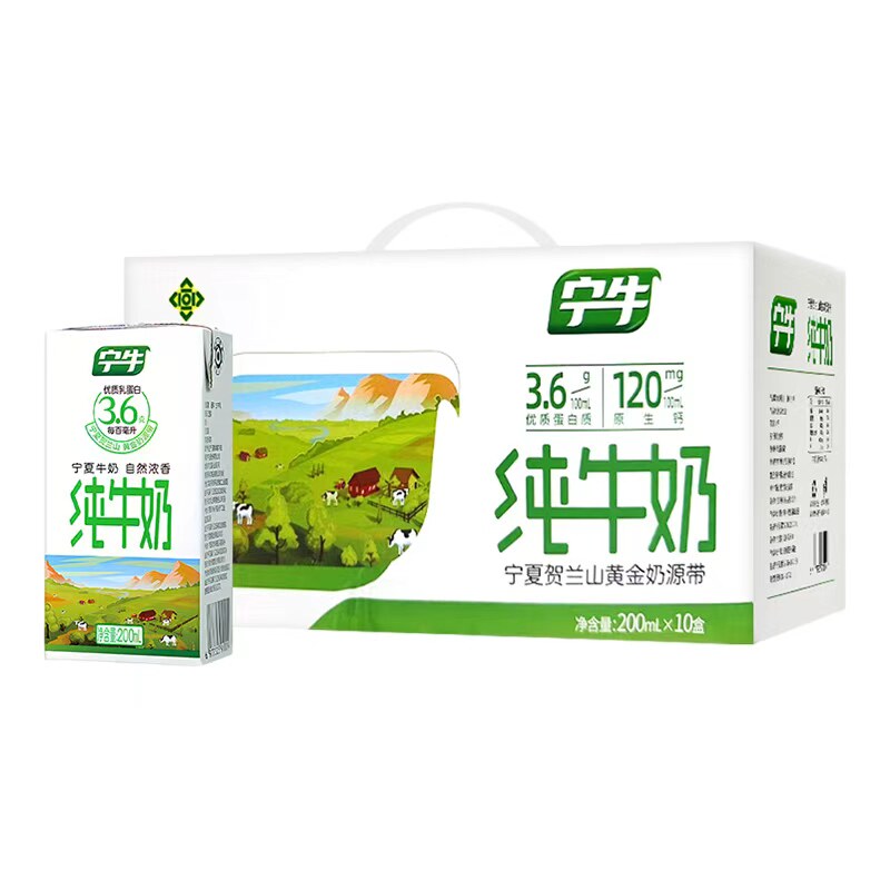 礼盒装新日期宁牛3.6蛋白纯牛奶全脂200ml*10盒整箱年货送礼优质