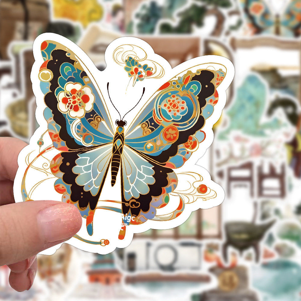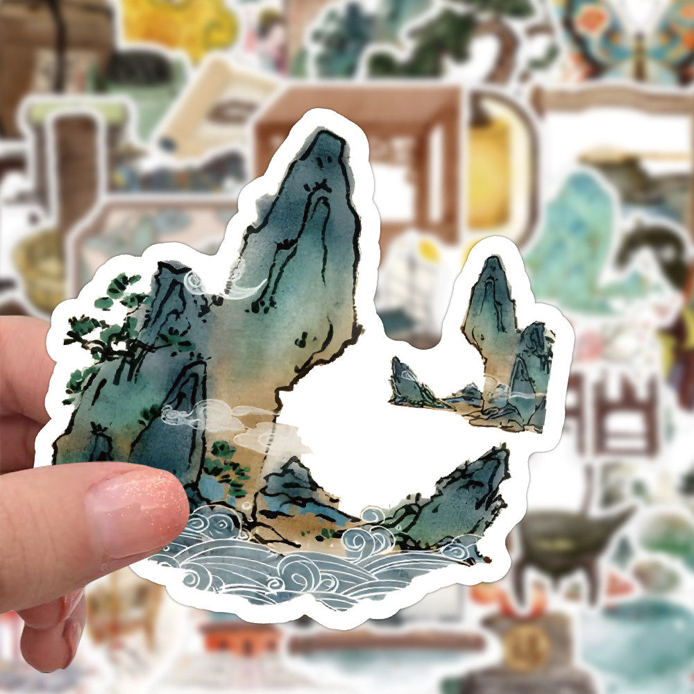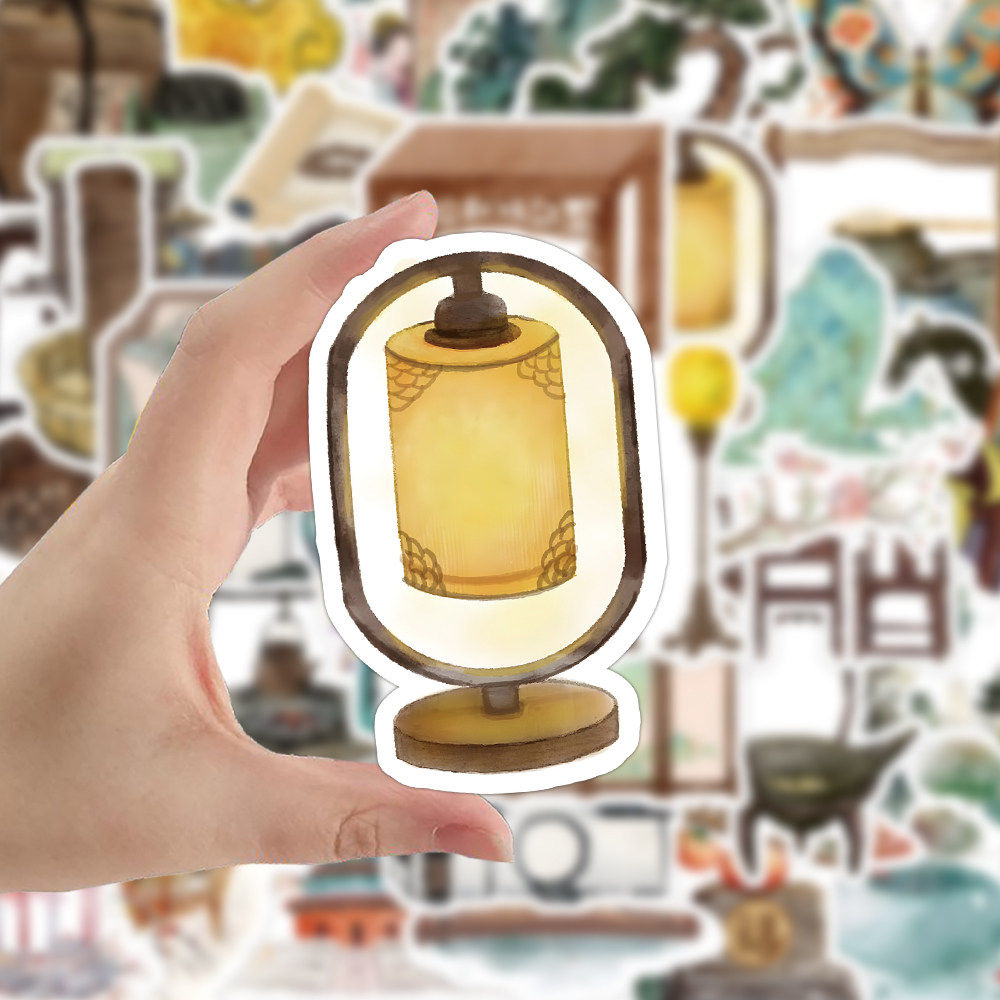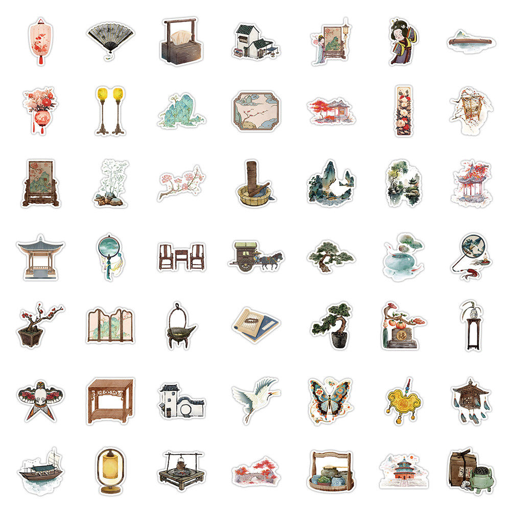 280张古风怀旧贴纸国风建筑灯笼风筝diy传统文化小物件卡通防水贴