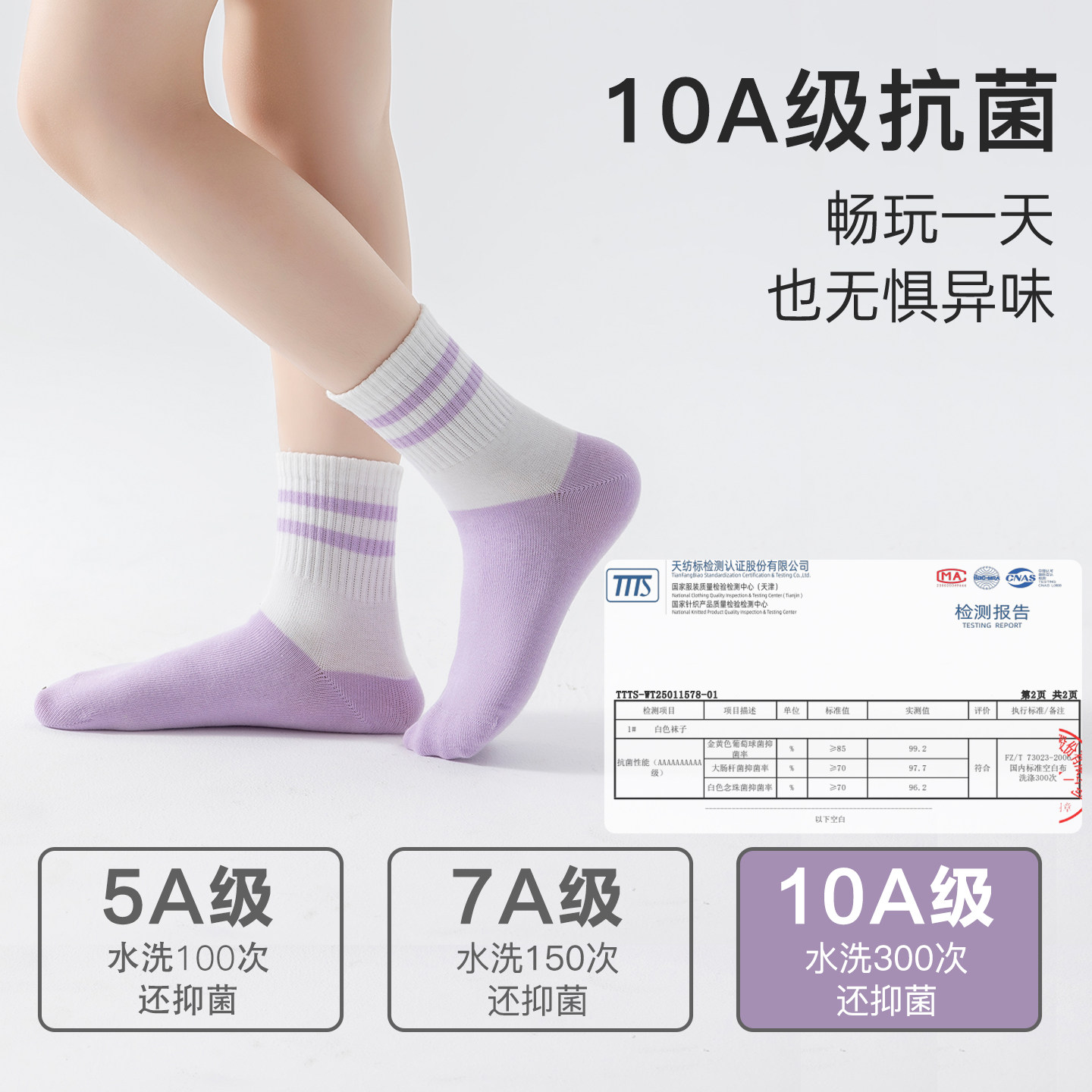 100%棉女童袜子纯棉a类秋冬季女孩防臭无骨抗起球中筒运动袜白色