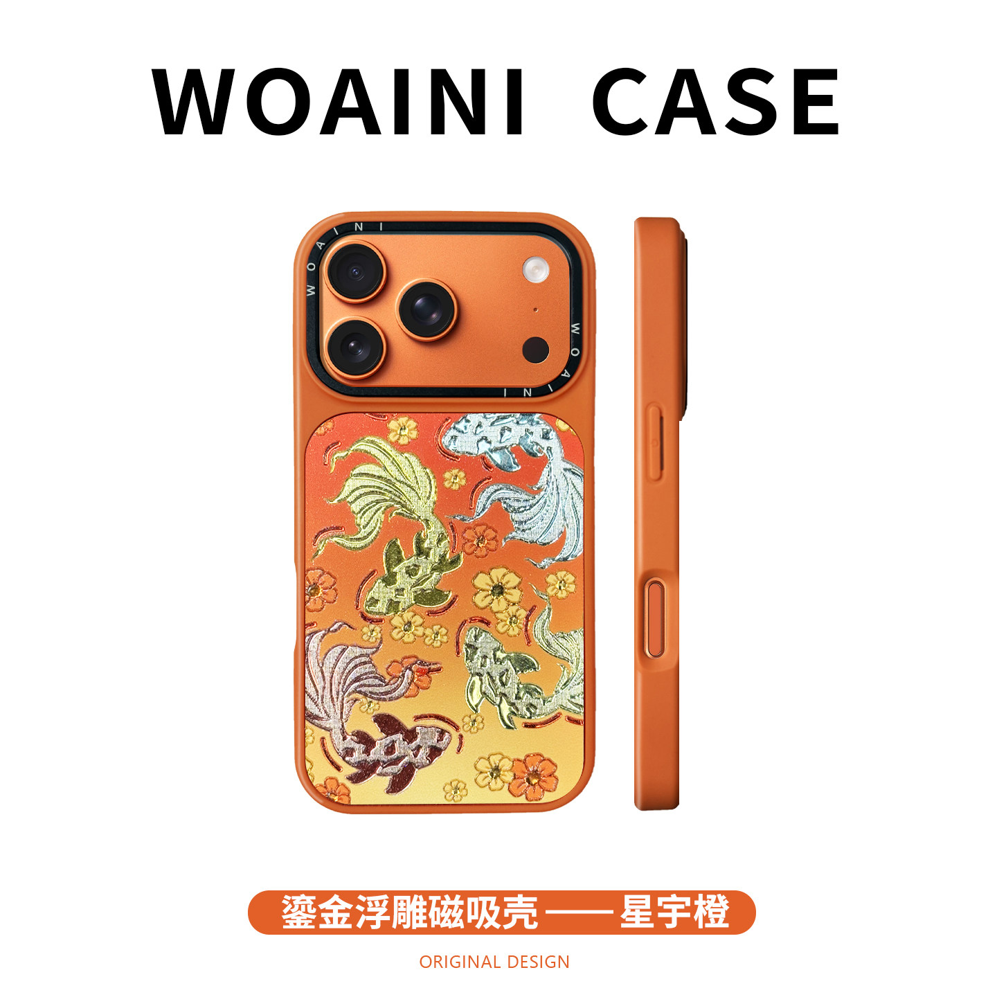 好运锦鲤适用苹果17Promax手机壳ins立体鎏金浮雕iPhone17高级感16新款15pro磁吸壳14小众创意13全包女款外壳