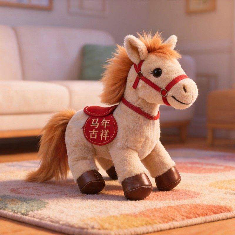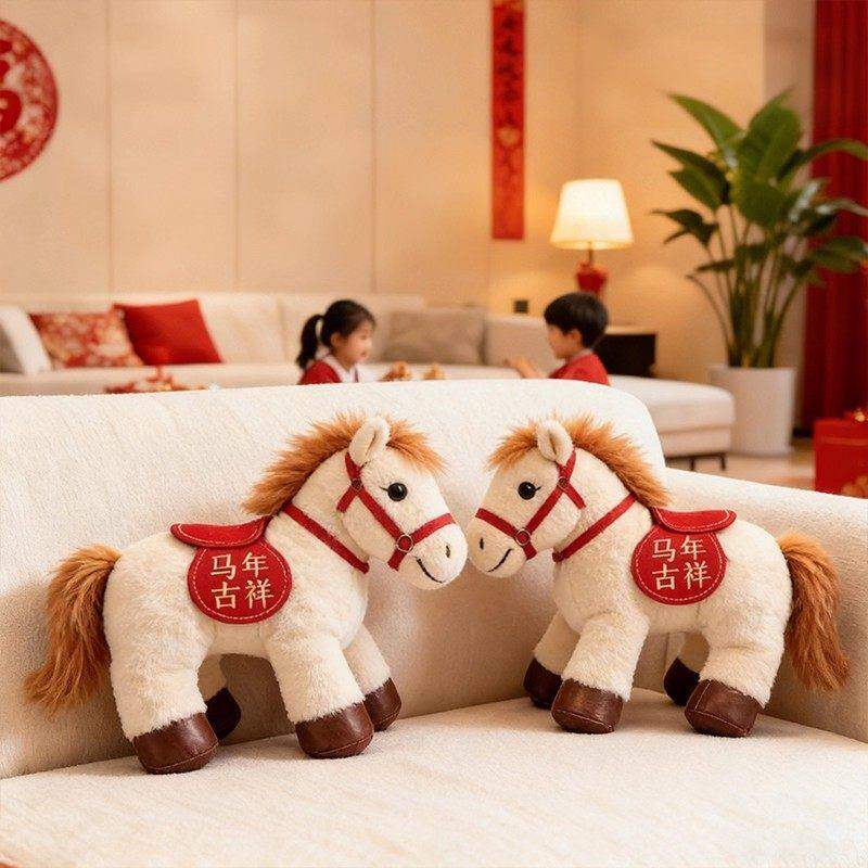 2026马年吉祥物公仔小马毛绒玩具可爱新年布娃娃公司礼品马上有钱