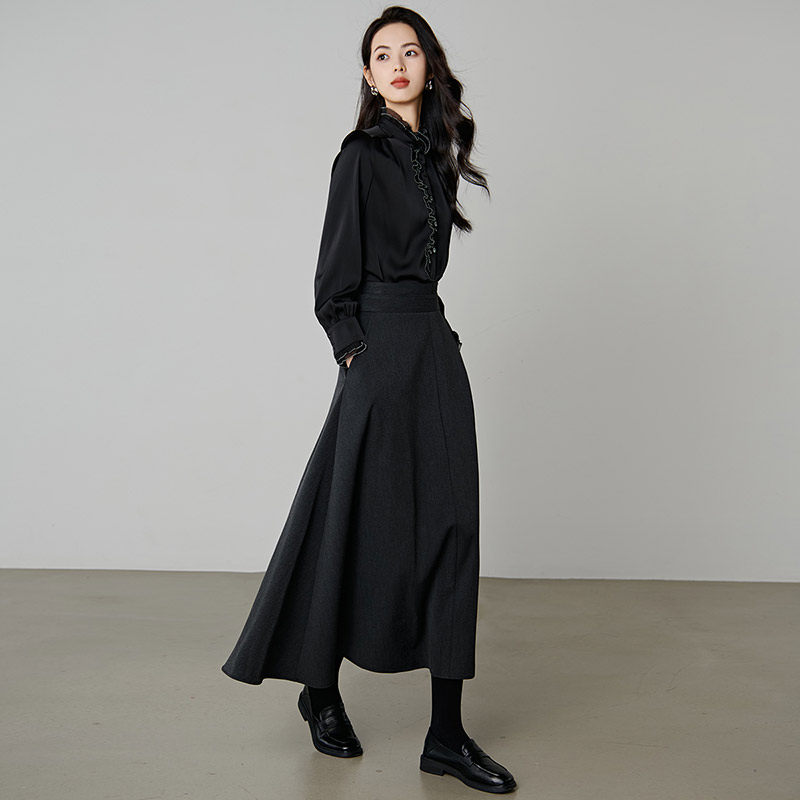 晚白2026年春新款显瘦纯色衬衫立领长袖衬衣简约轻奢上衣女