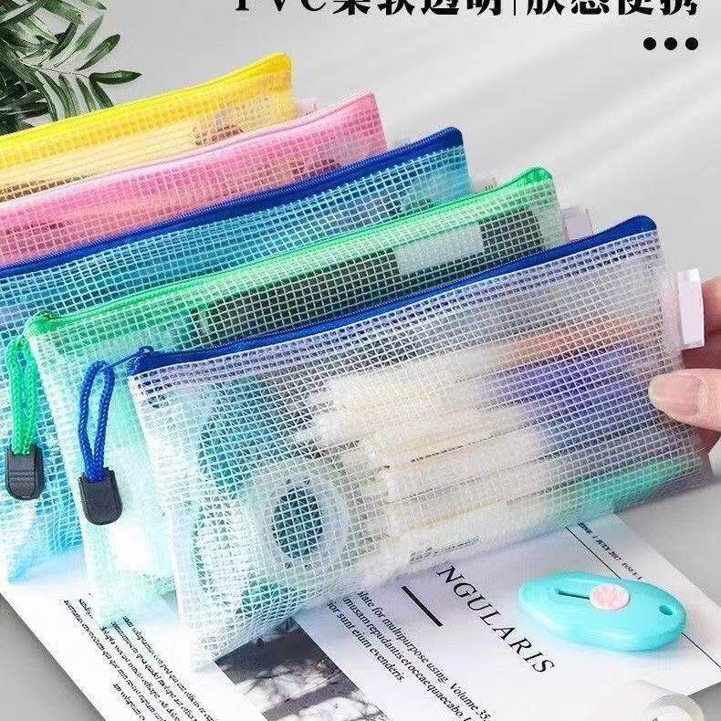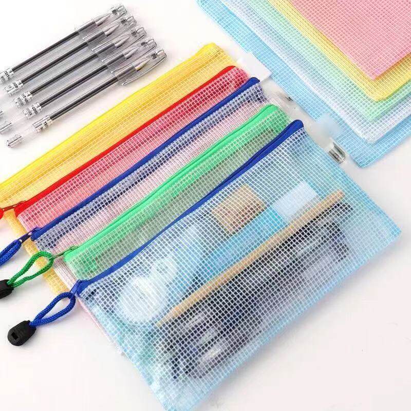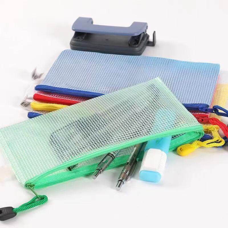 A4透明网格文件袋简约防水文具袋收纳拉链袋笔袋批发