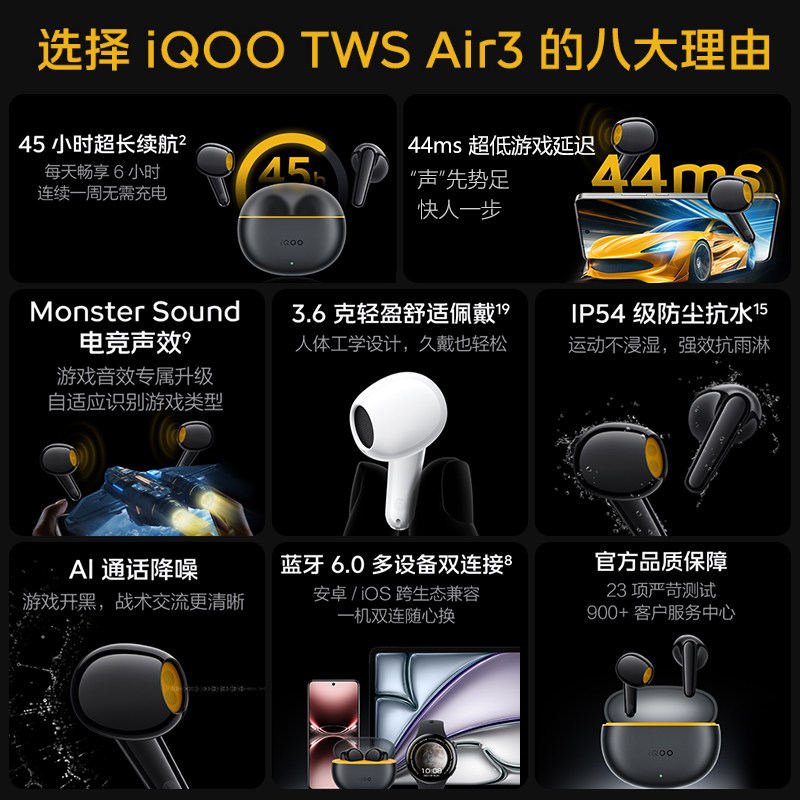 iQOO TWS Air3真无线耳机twsair2半入耳 新品iqootwsair3蓝牙耳机