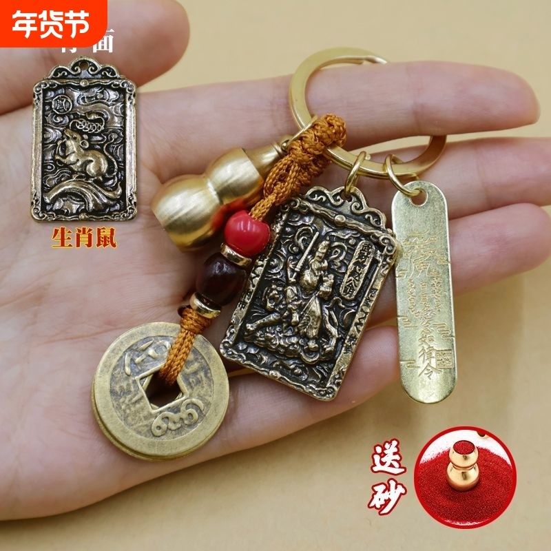 正财神赵公明十二生肖钥匙扣黄铜令武财神五路财神挂件葫芦五帝钱