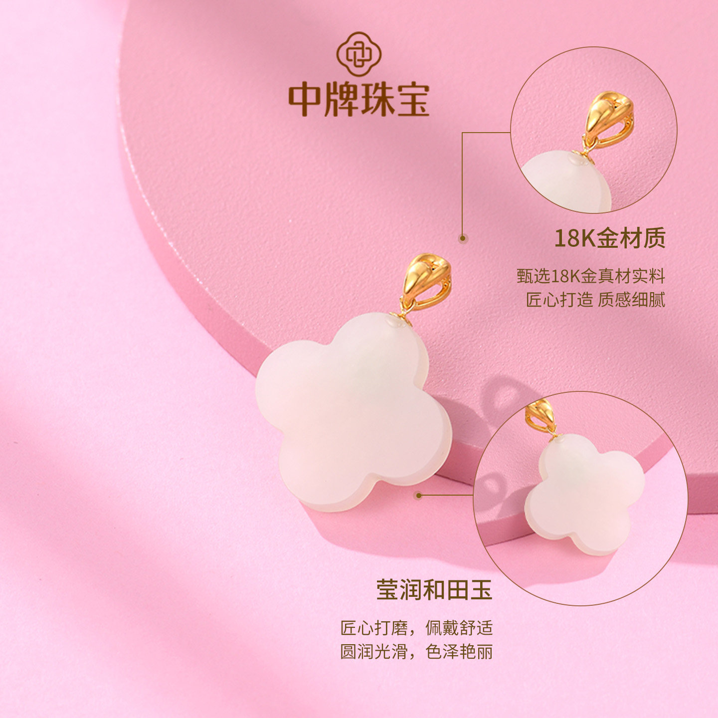 TSL谢瑞麟悦己系列18k金项链白贝母粉贝母如意63871