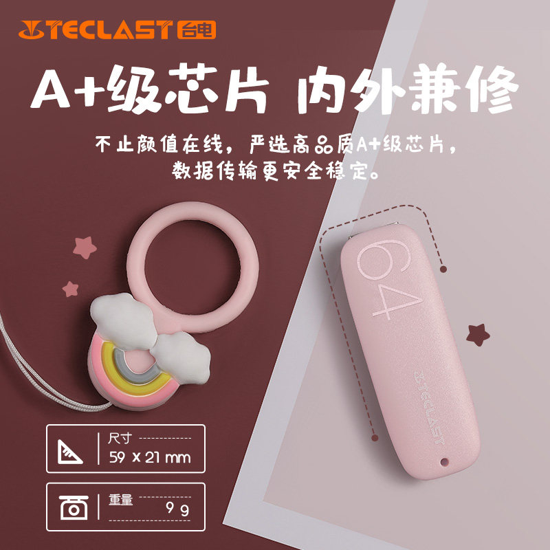 台电正品2.0u盘64g粉色可爱卡通高颜值好看女生个性定制教师专用
