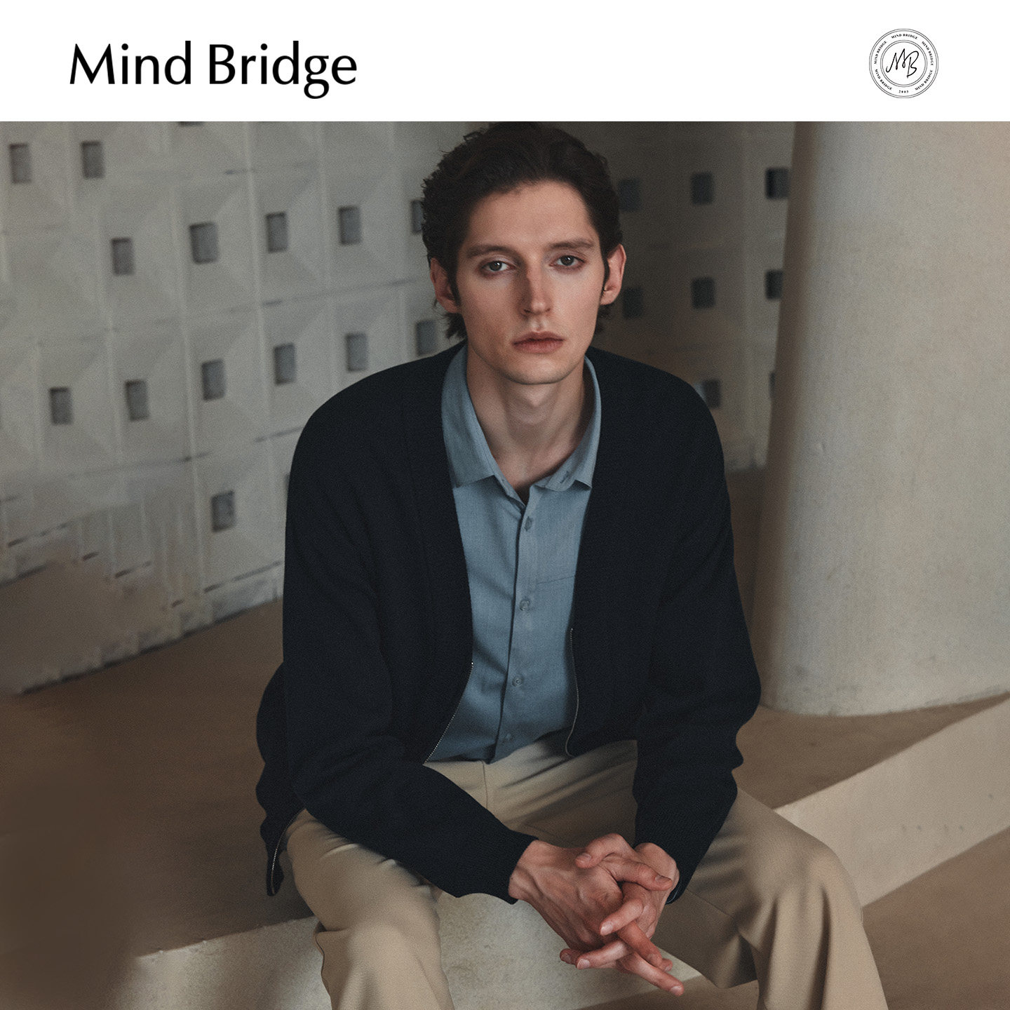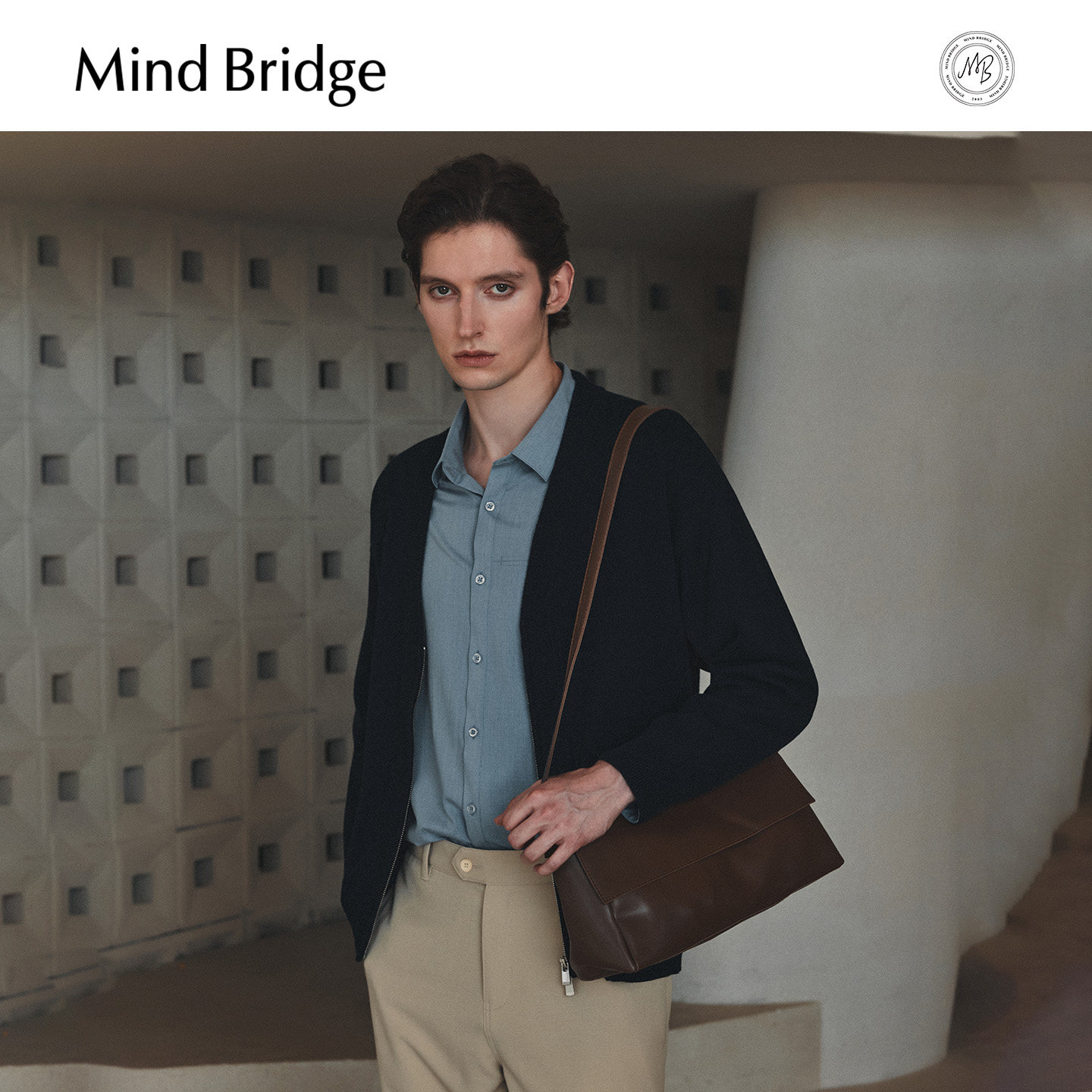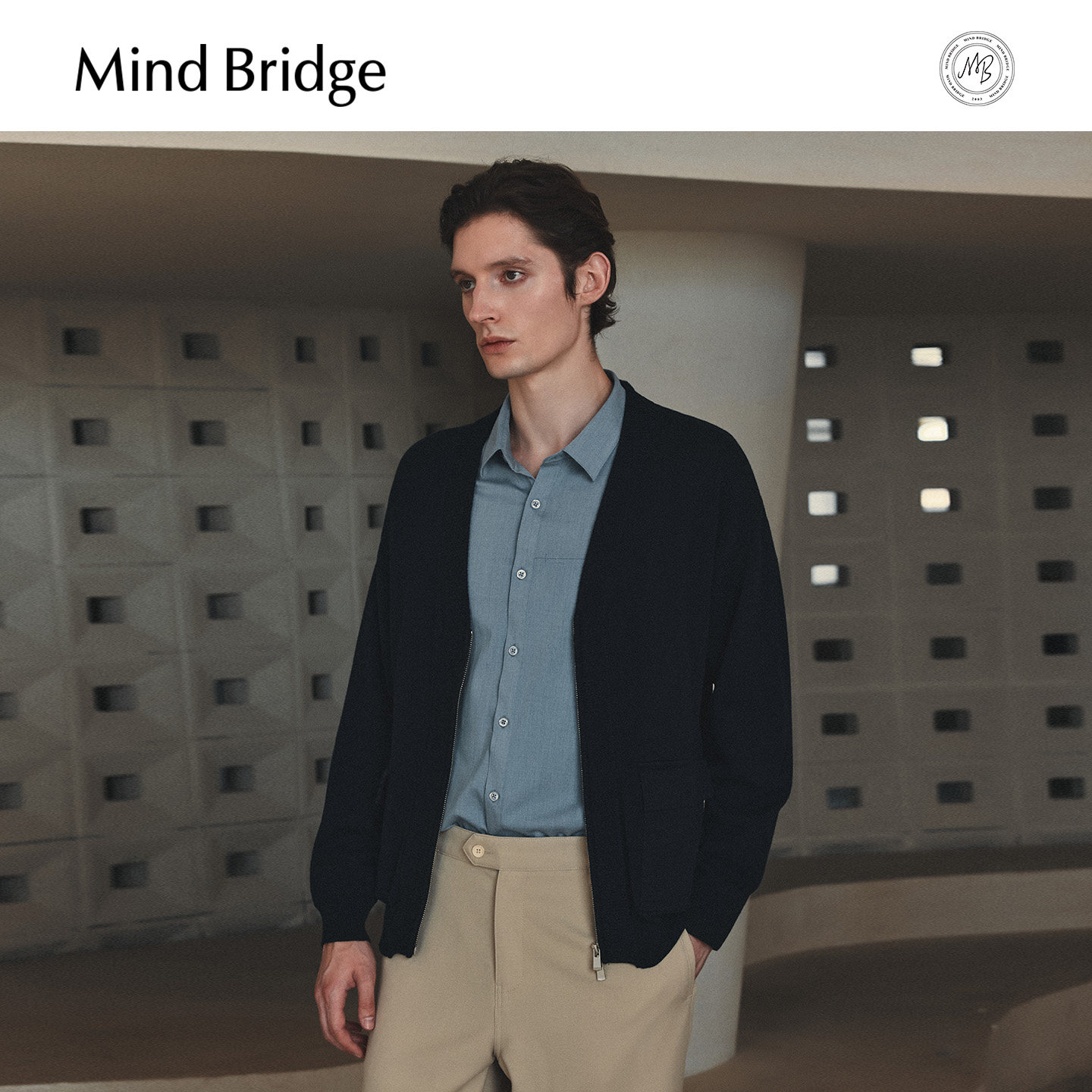 Mind Bridge【纯棉】男士V领针织开衫2025年秋纯色通勤毛衣外套