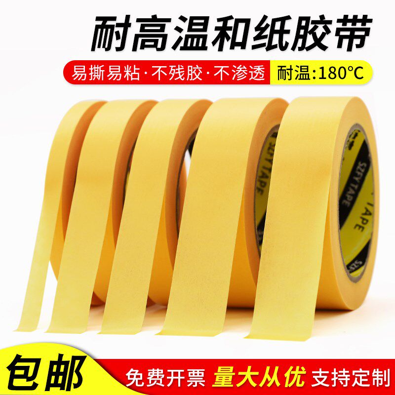黄色和纸美纹纸胶带模型遮盖x汽车喷漆遮蔽撕下不残留无痕耐高温