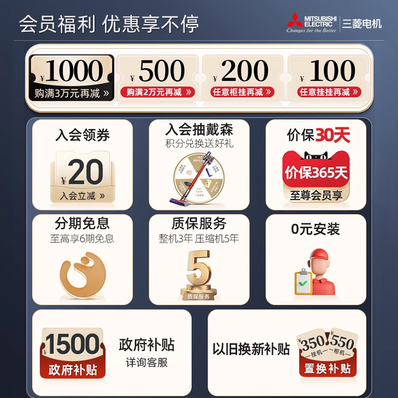 三菱电机MSZ-KY12VFK一级变频1.5匹智能家用空调冷暖卧室挂机官方