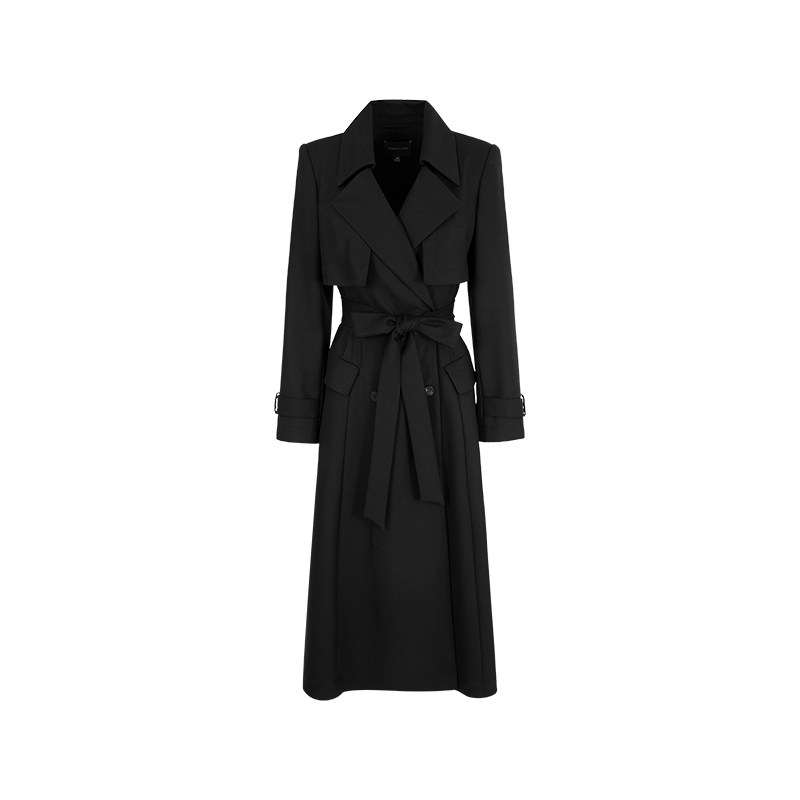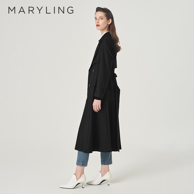 MARYLING玛俪琳初春新品黑色A摆风衣式外套A1EAW17040
