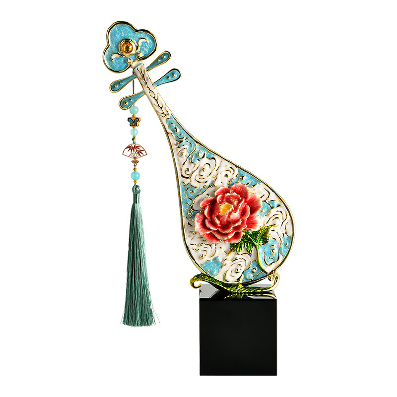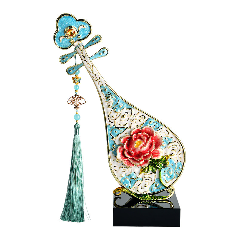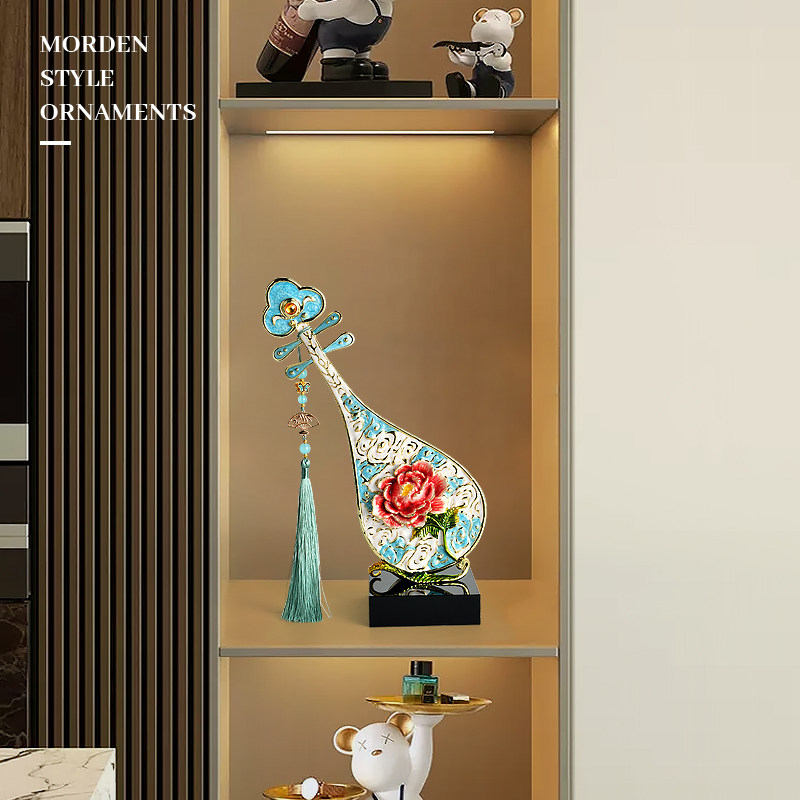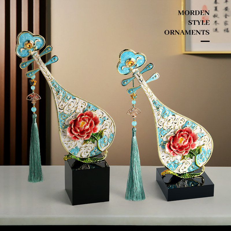 珐琅彩牡丹花琵琶摆件客厅酒柜电视柜装饰乔迁新居礼品博古架饰品