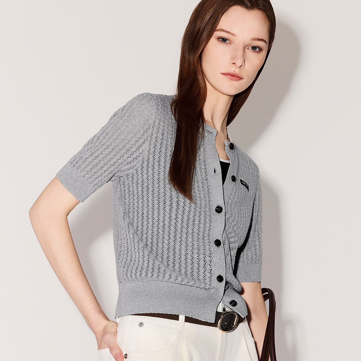 【新品】OCHIRLY欧时力 针织外套2026春夏镂空绣章防晒纯棉短袖