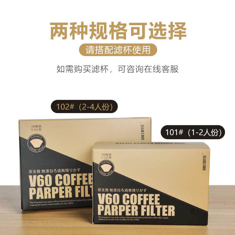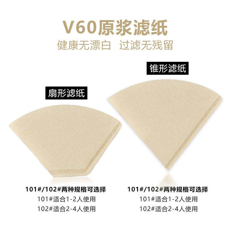咖啡过滤纸手冲滴漏式滤网美式咖啡机扇形原木滤纸V60滤杯食品级