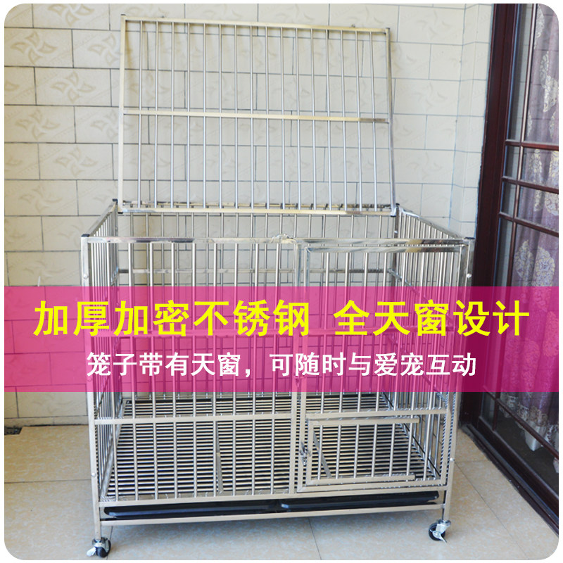 不锈钢狗笼子小中大型犬金毛泰迪带厕所室内双层加粗加厚宠物笼