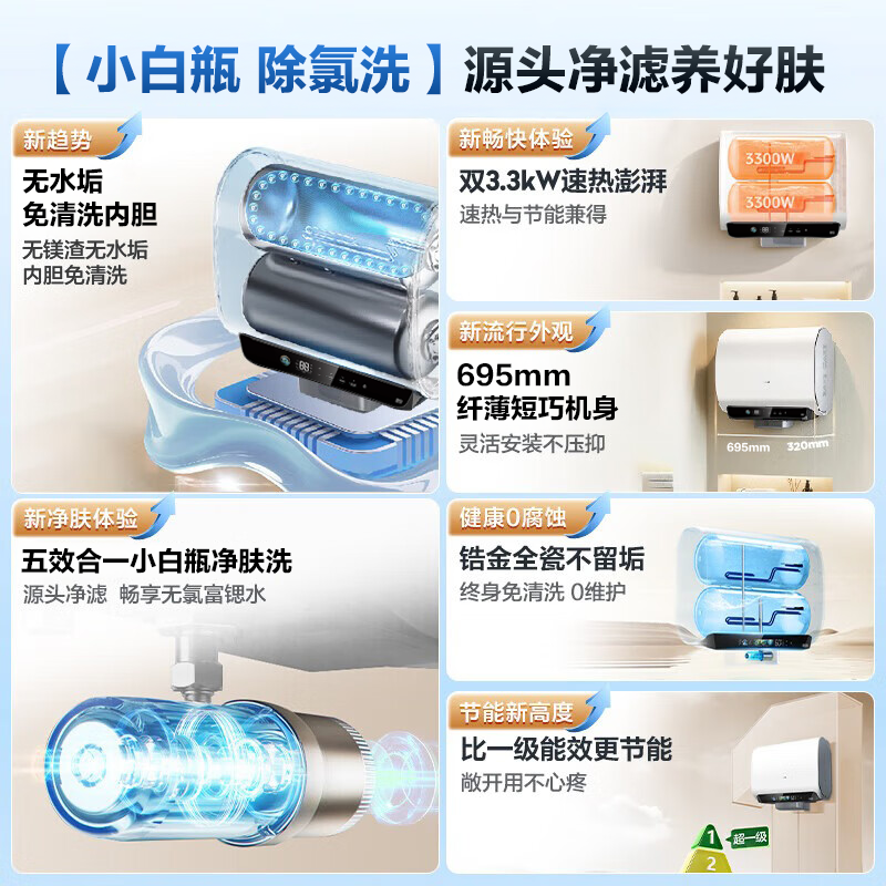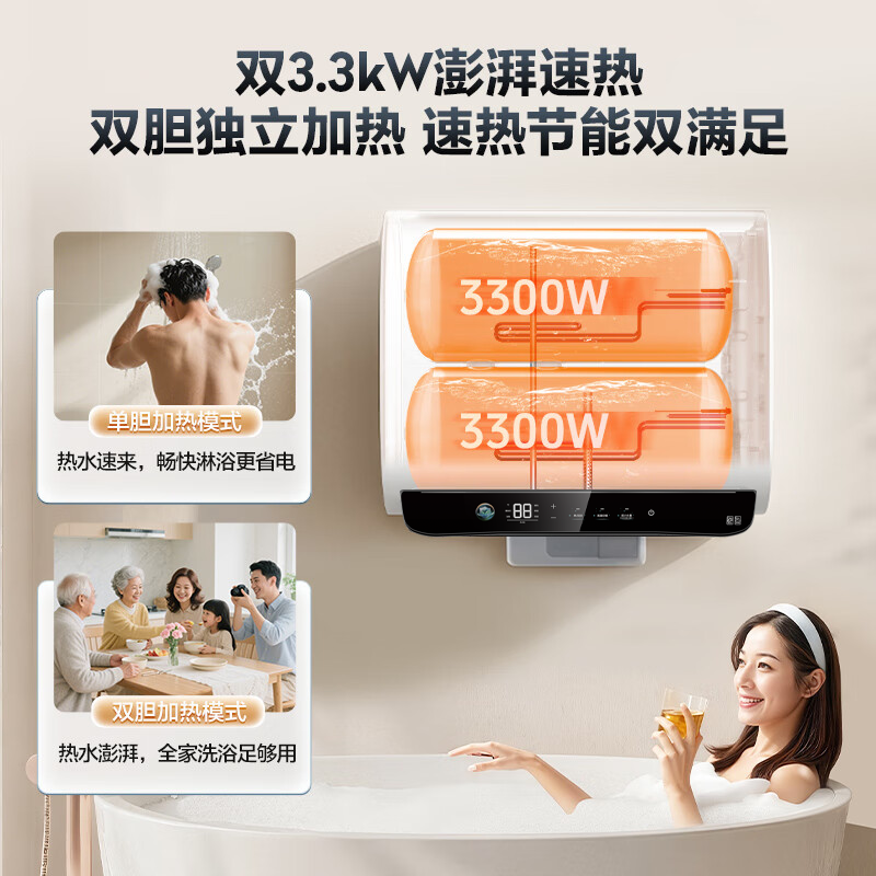 国补海尔扁桶电热水器家用双胆统帅60升小蓝瓶除氯澡卫生间DH11