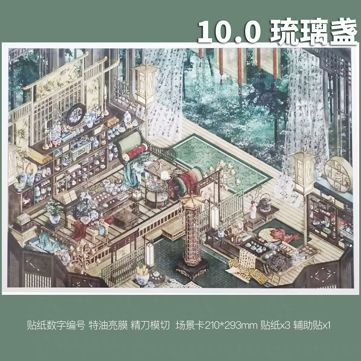 天空岛10.0造景贴纸 缤纷都市周四傍晚琉璃盏翡翠笼 微缩场景贴画