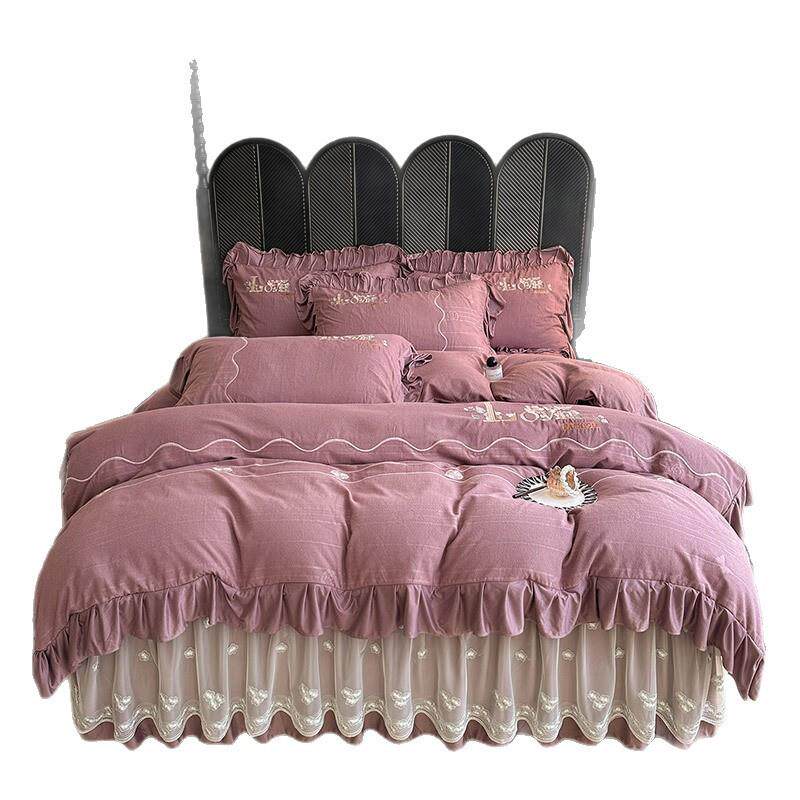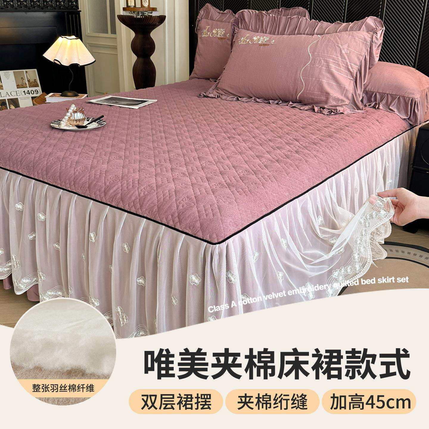 A类棉绒床裙刺绣绣花轻奢公主风优雅奶油风夹棉床裙床上四件套-9